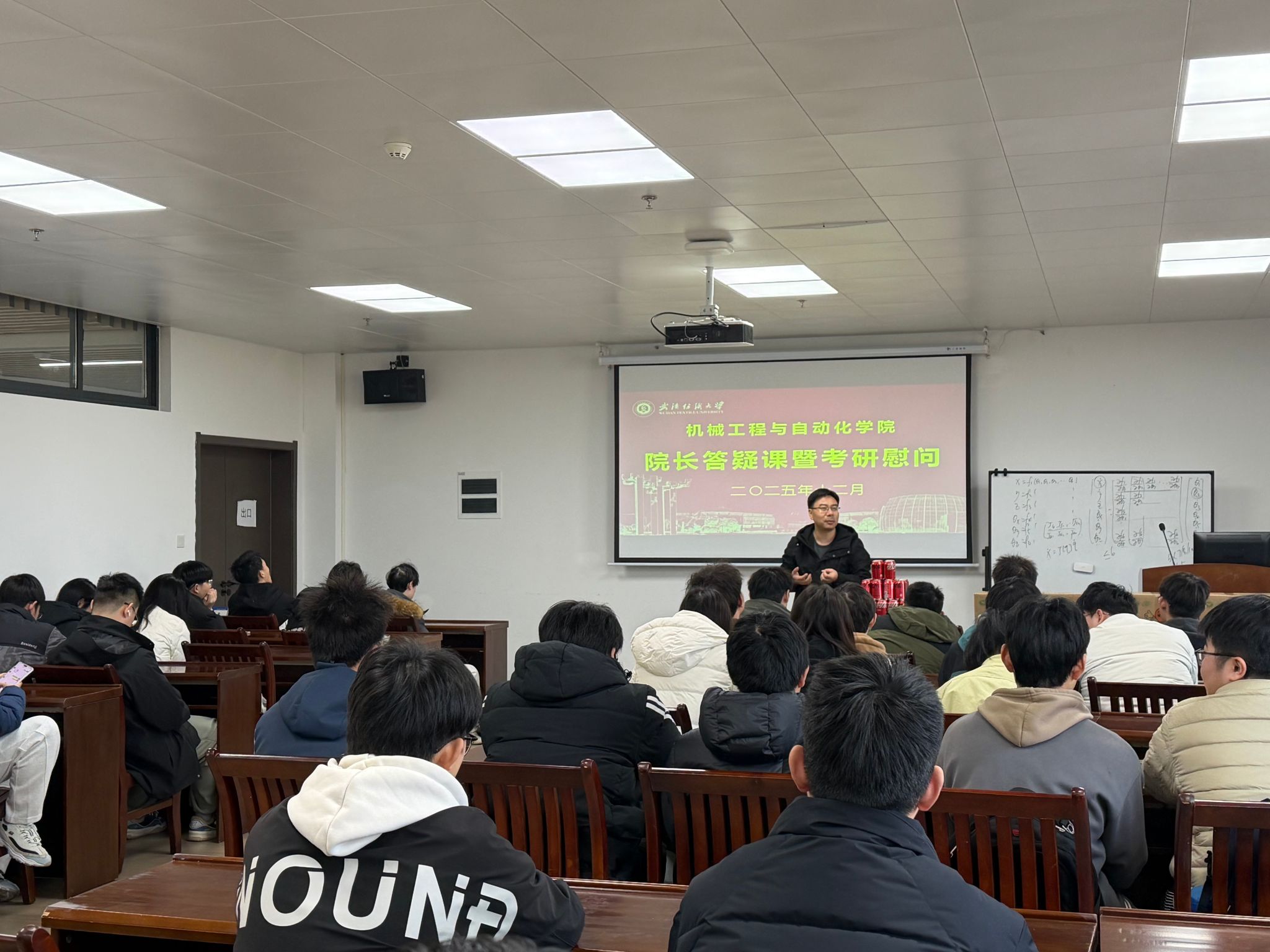 为考研学子送去温暖关怀,缓解备考压力,进一步提振备考信心,12月11日下午,机械学院在崇行楼408会议室举行了“院长专题答疑课暨2026届考研慰问活动”。学院院长余联庆、副院长张成俊和专业负责人现场与考研的学子们面对面交流,传经送宝、加油鼓劲。活动由2022级辅导员王娟、张啸海共同主持。