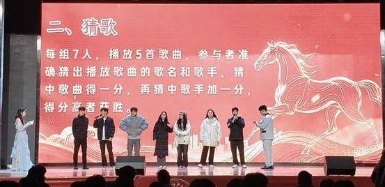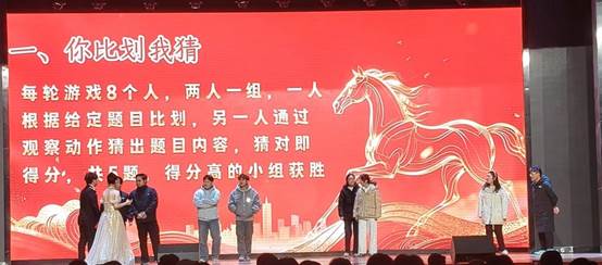 晚会中段穿插“你比划我猜”、“猜歌挑战”、“快问快答”等互动游戏,新生踊跃参与,在协作与竞技中增进了解,现场气氛轻松热烈,彰显机械学院团结活泼的集体风貌。