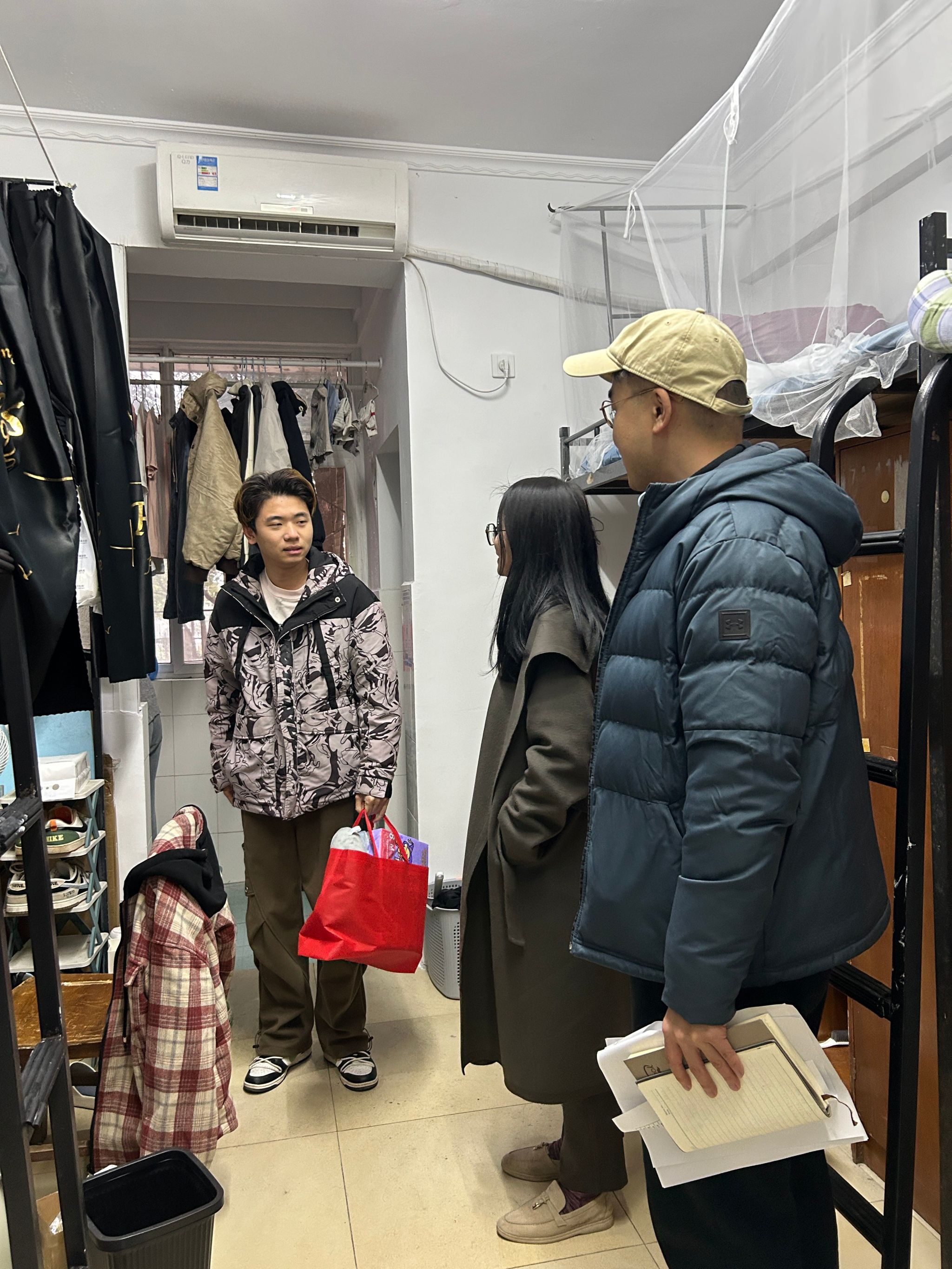 12月12日,数统学院党委书记李楠、党委副书记陈国鹏、副院长郑仟分别前往学生宿舍走访慰问,与学子们面对面交流,细致了解学习生活中的难题与困惑,为大家送上暖心关怀与成长勉励。