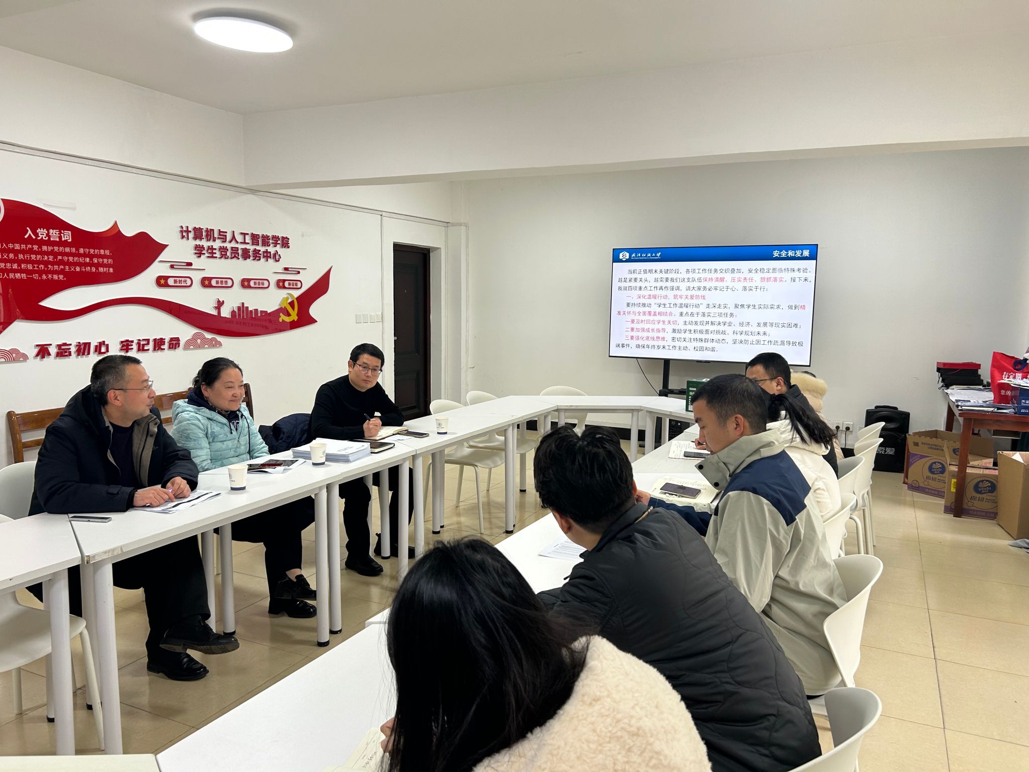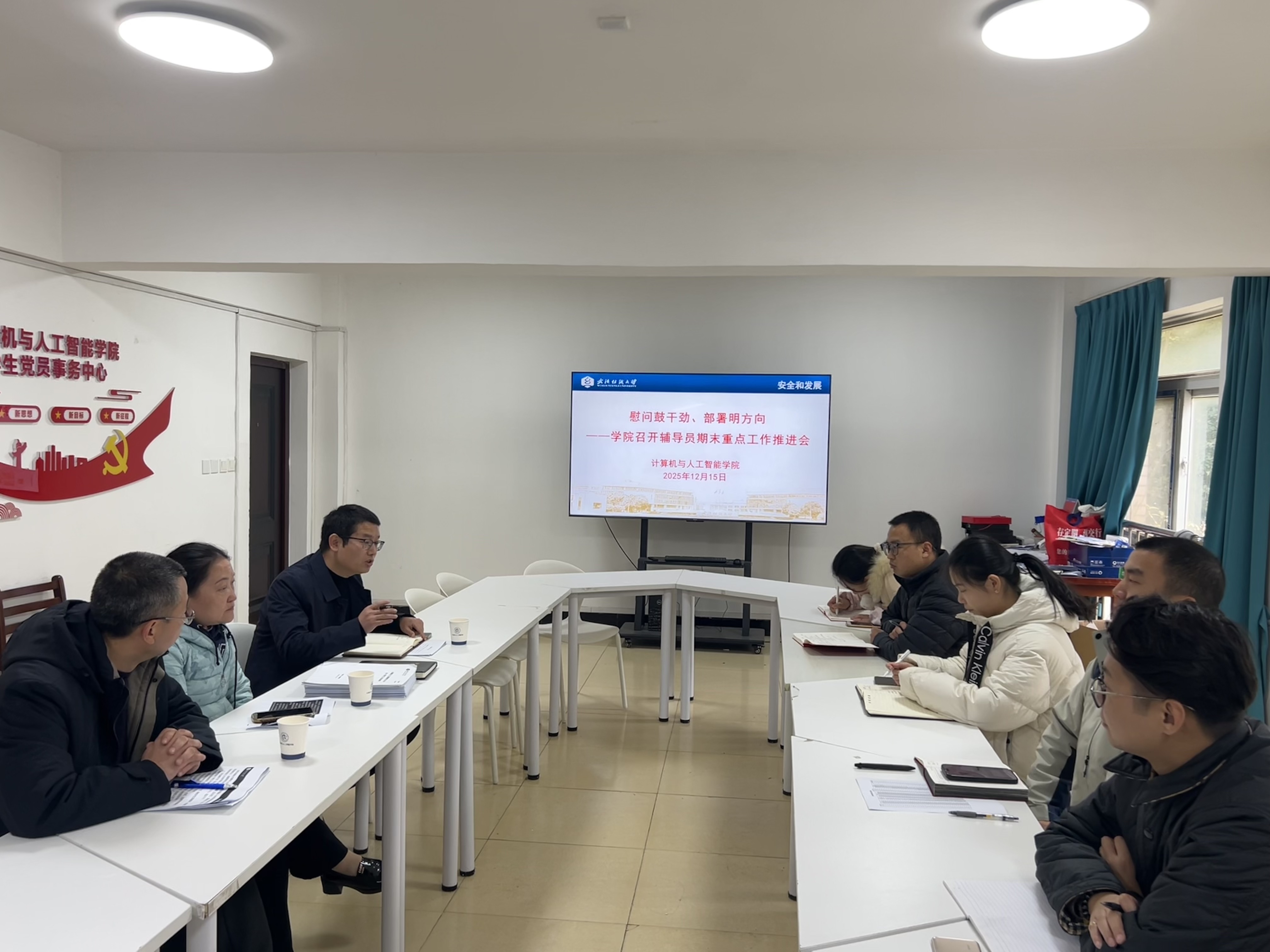 近日,计算机学院召开辅导员期末重点工作推进会暨暖心慰问活动,全面部署期末学工重点任务,凝聚队伍力量,筑牢校园安全防线。学院院长胡新荣教授、院党委书记晏伟出席活动,会议由向涛主持,全体辅导员参加。