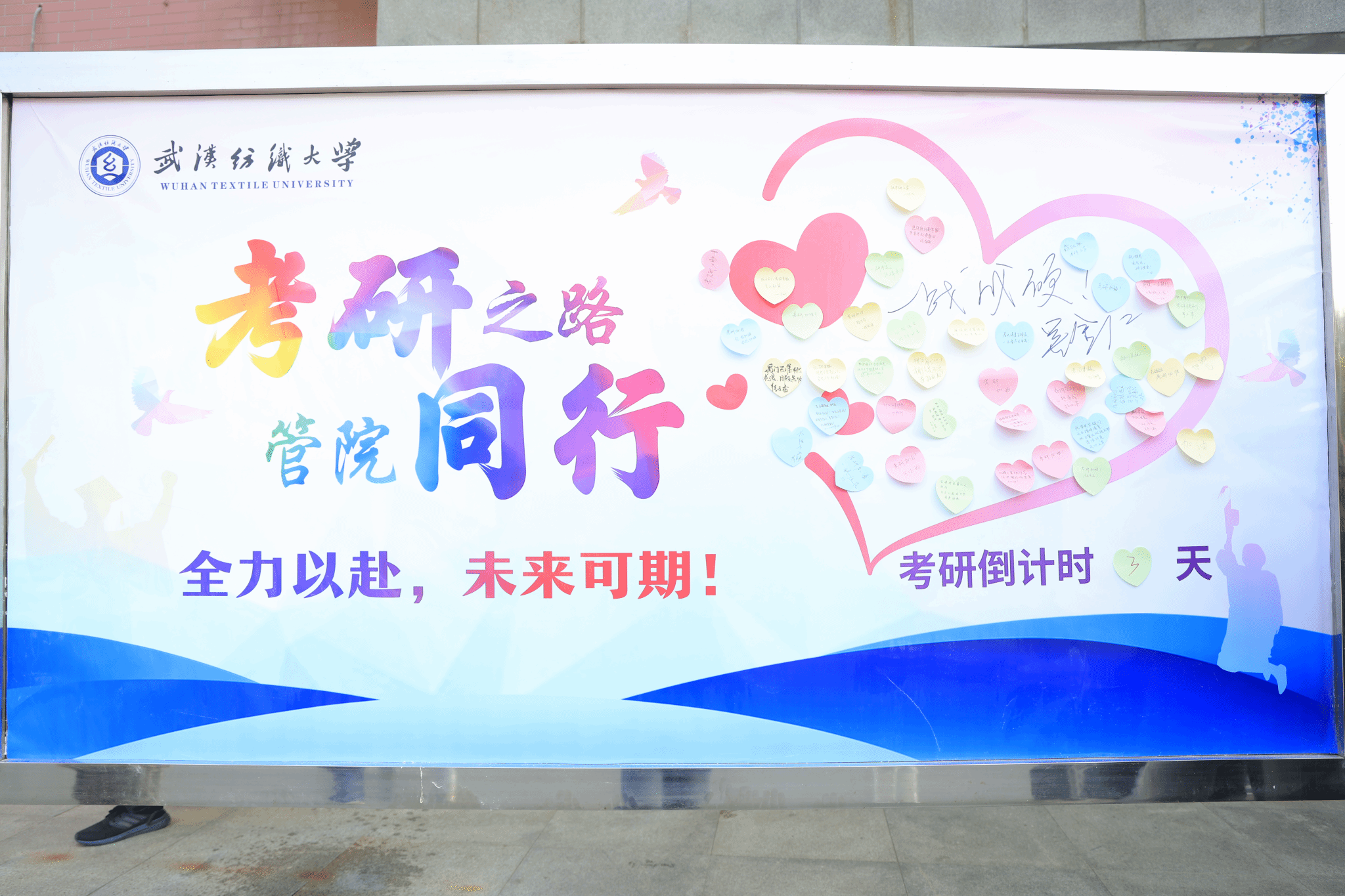 在管理学院的祝福墙前,吴金红率先写下“一战成硕”四个大字,寄语同学们,“愿大家以最佳状态迎接挑战,不负韶华,圆梦理想!”赵立彬则勉励大家,“把考研当作成长路上的重要历练,学院永远是你们的坚实后盾!”耿迪和师生代表也纷纷贴上祝福便签,现场气氛温馨而励志。学院领导还为考研学子送上慰问物资,同学们接过物资,脸上洋溢着笑容,纷纷表示,“学院的关怀让我们倍感温暖,一定全力以赴!”