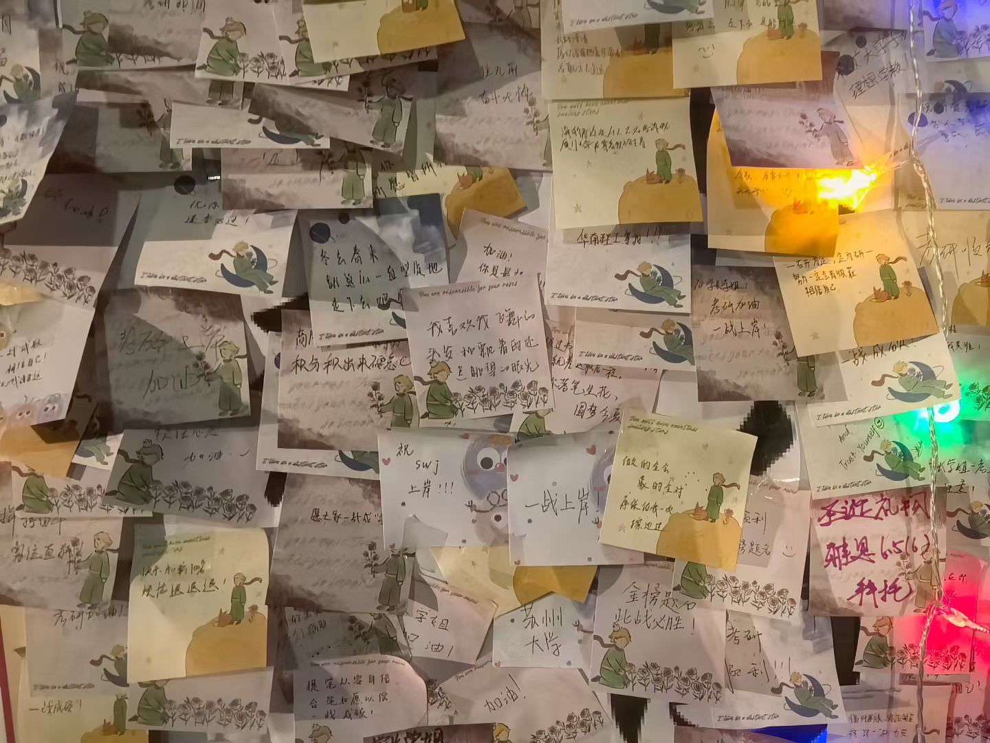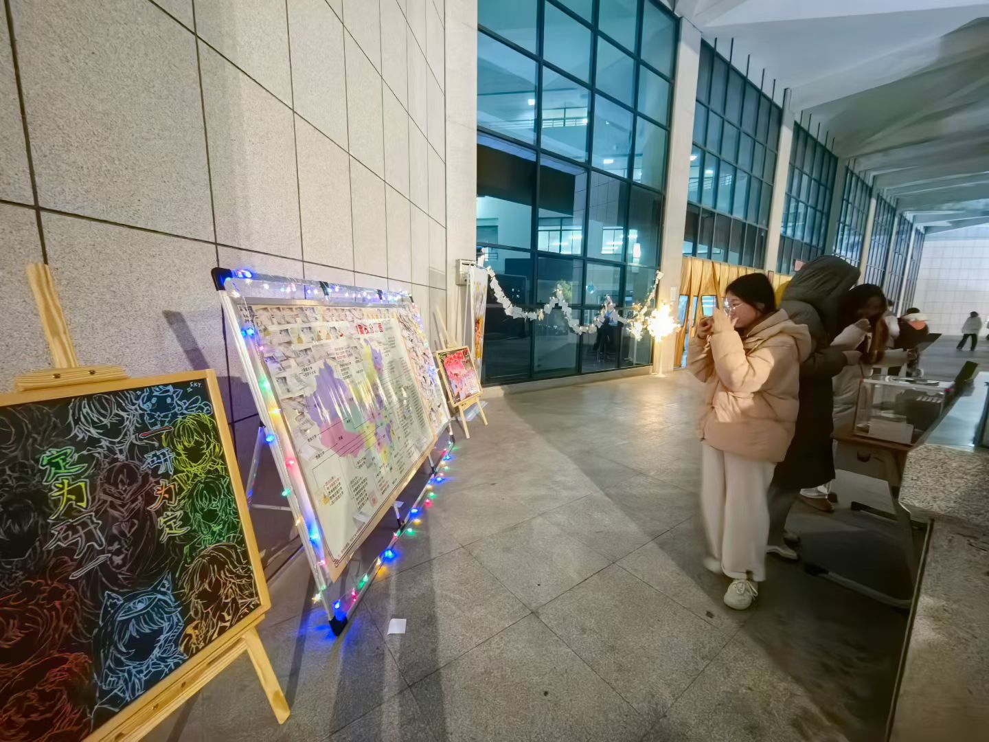 同时,现场还为学子发放祝福卡片,传递温暖力量。纸短情长,乐音相伴,图书馆以最真挚的方式,祝愿每一位奋斗的你执笔为剑,终成山海,一战成“硕”!