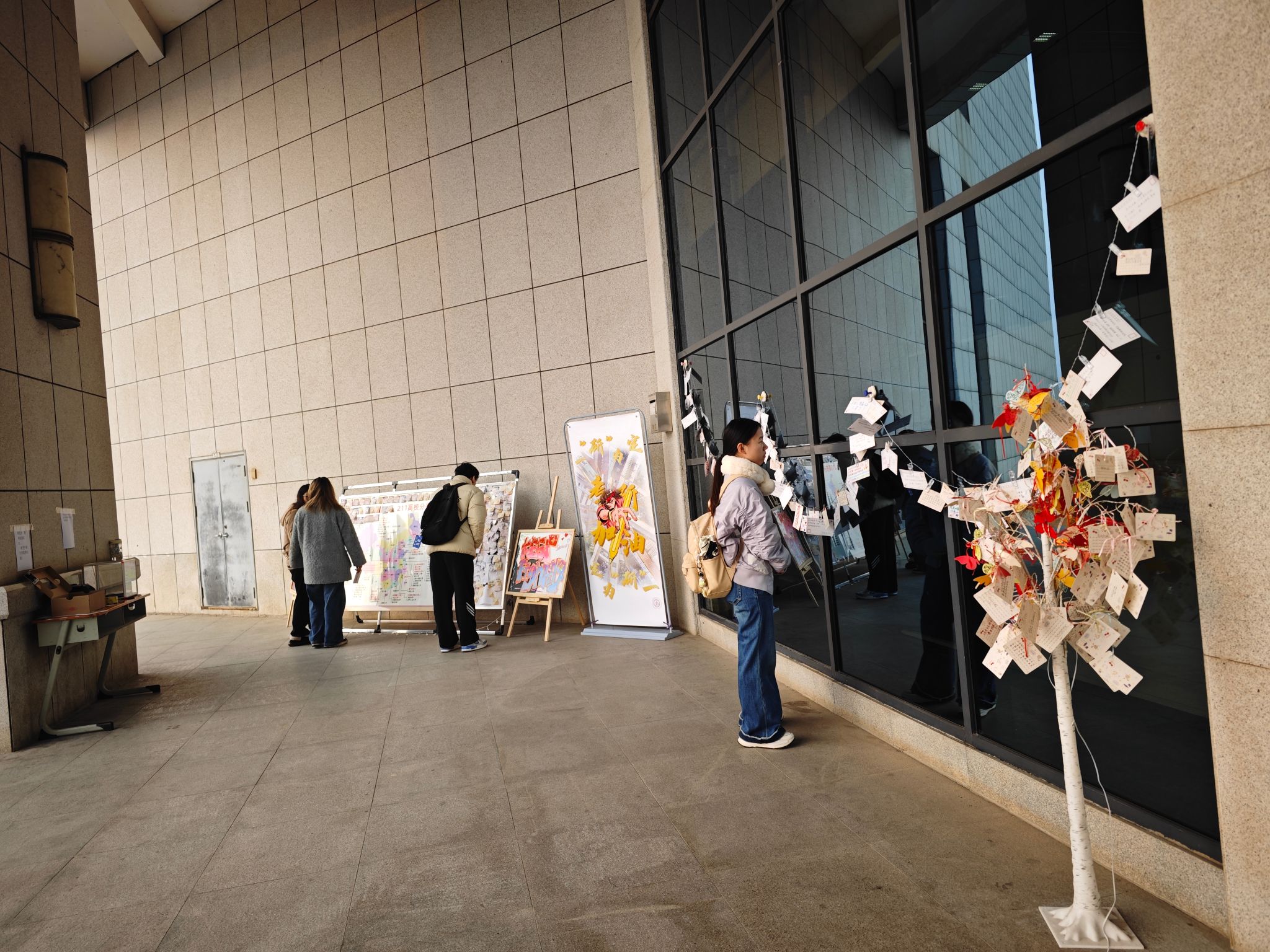 图书馆门口设置了为考研学子助力加油打气的贺卡送祝福区,让我校学子为考研学生送去温暖的爱心祝福。
