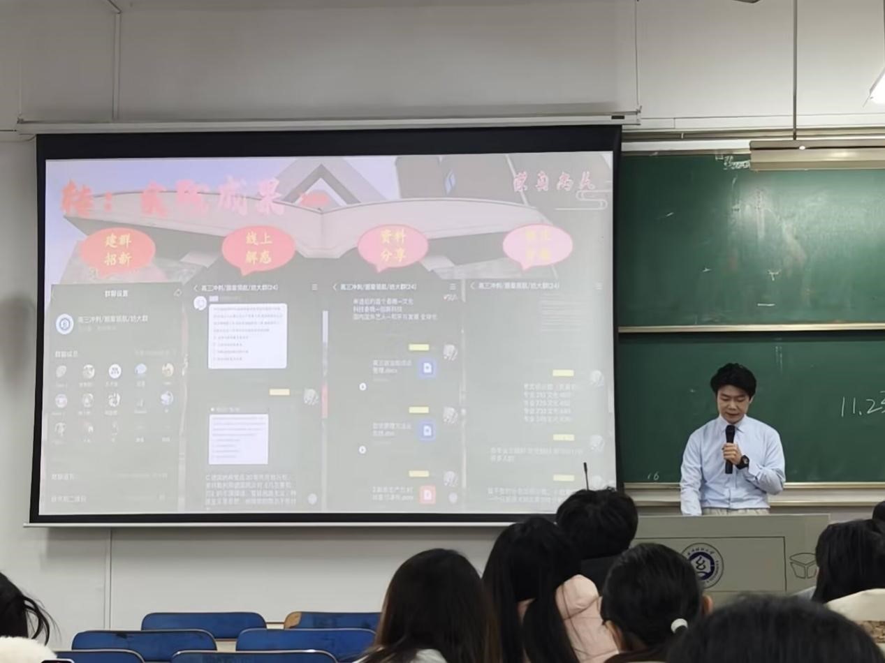 周怡超重点讲解“前期准备”:建议提前通过高中班主任联系母校,明确宣讲时间与场地;准备好纺大宣传片、服装学院专业介绍PPT及个人高考备考经验笔记,让宣讲内容更具吸引力。