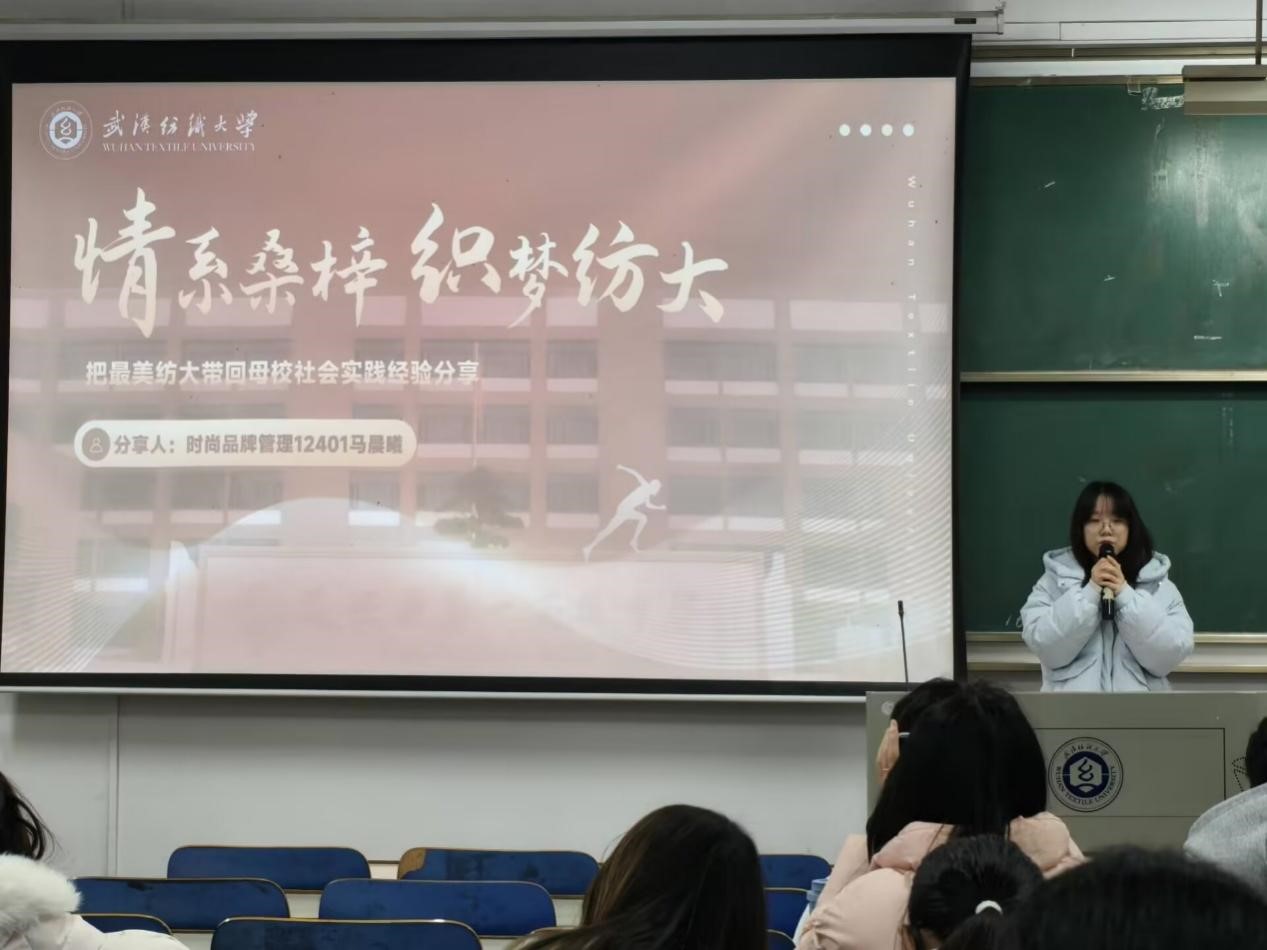为充分发挥朋辈引领作用,帮助学子明确寒假社会实践方向,高质量推进“最美纺大带回母校”志愿活动落地,12月18日下午,服装学院在南湖校区尚知楼111成功举办“最美纺大带回母校”分享交流会暨第八届“最美纺大带回母校”寒假社会实践启航仪式。学院党委副书记郭泰辰、团委指导老师周曦,各年级实践意向参与学生、2025届部分学子共计百余人参加本次活动,活动共分为三个部分。