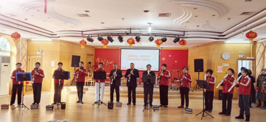 电吹管班队深情演奏了《碧海蓝天圆舞曲》和《金蛇狂舞》,悠扬旋律与激昂节奏交织,给观众们带来了一场听觉盛宴。