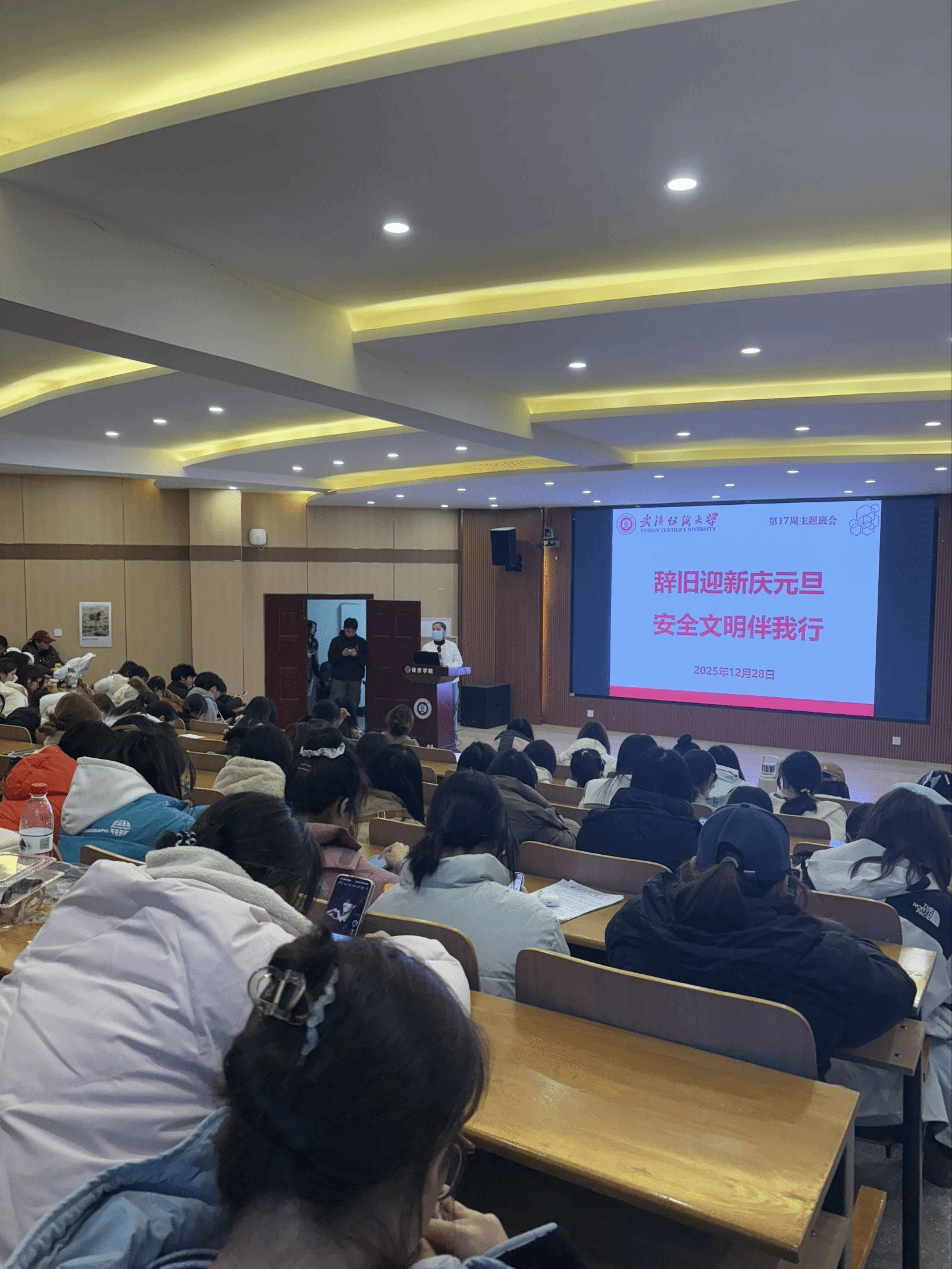 为深入贯彻中央经济工作会议精神,传承元旦传统文化,筑牢假期安全防线,12月28日,经济学院各年级于崇德楼开展“辞旧迎新庆元旦,安全文明伴我行”主题班会。本次班会由各年级辅导员、班主任主持。