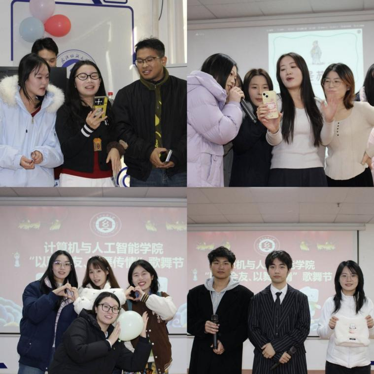 近日,计算机学院研究生在崇真楼南楼A4030成功举办了"以歌会友"歌舞活动。学院教学秘书罗园、研究生辅导员余梦帆以及各年级研究生120余人参加本次活动。
