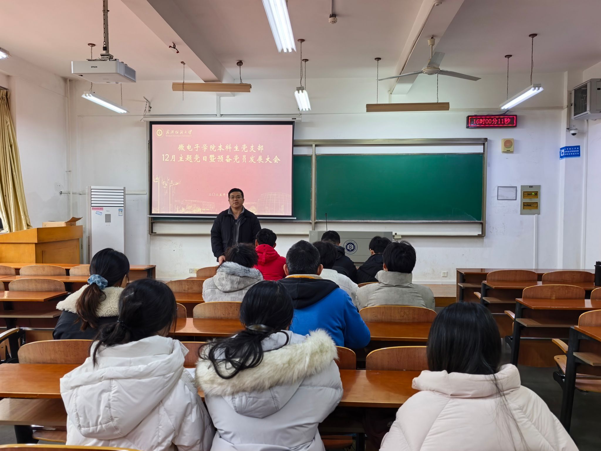 12月29日,微电子学院本科生党支部组织开展12月主题党日活动暨2025年下半年预备党员接收大会。学院学工办公室主任卫周瑶、本科生党支部书记方林及支部全体党员、本次拟接收的预备党员共同参加了本次活动。