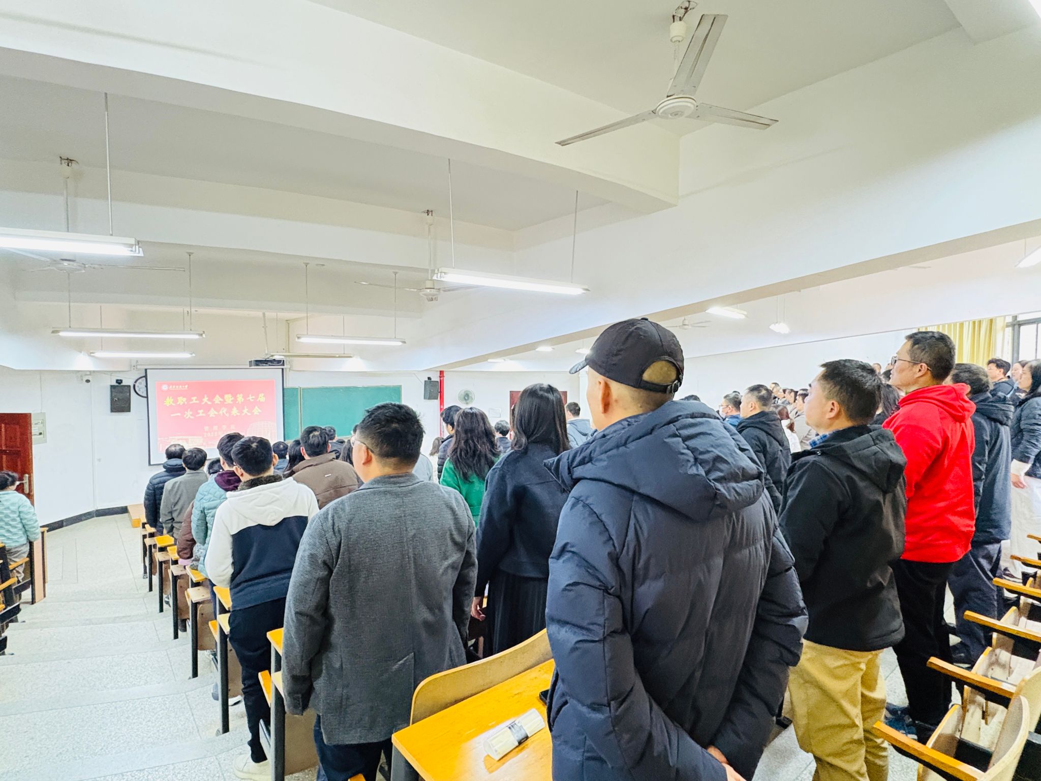 大会在庄严雄壮的国歌声中拉开帷幕。学院执行院长吴金红代表学院领导班子作2025年度工作报告。报告全面回顾了过去一年学院在党建与学科建设、科研成果、课程建设、人才培养、制度改革和学风建设等方面取得的阶段性成效,并围绕学院发展实际,对2026年重点工作进行了系统谋划和部署。