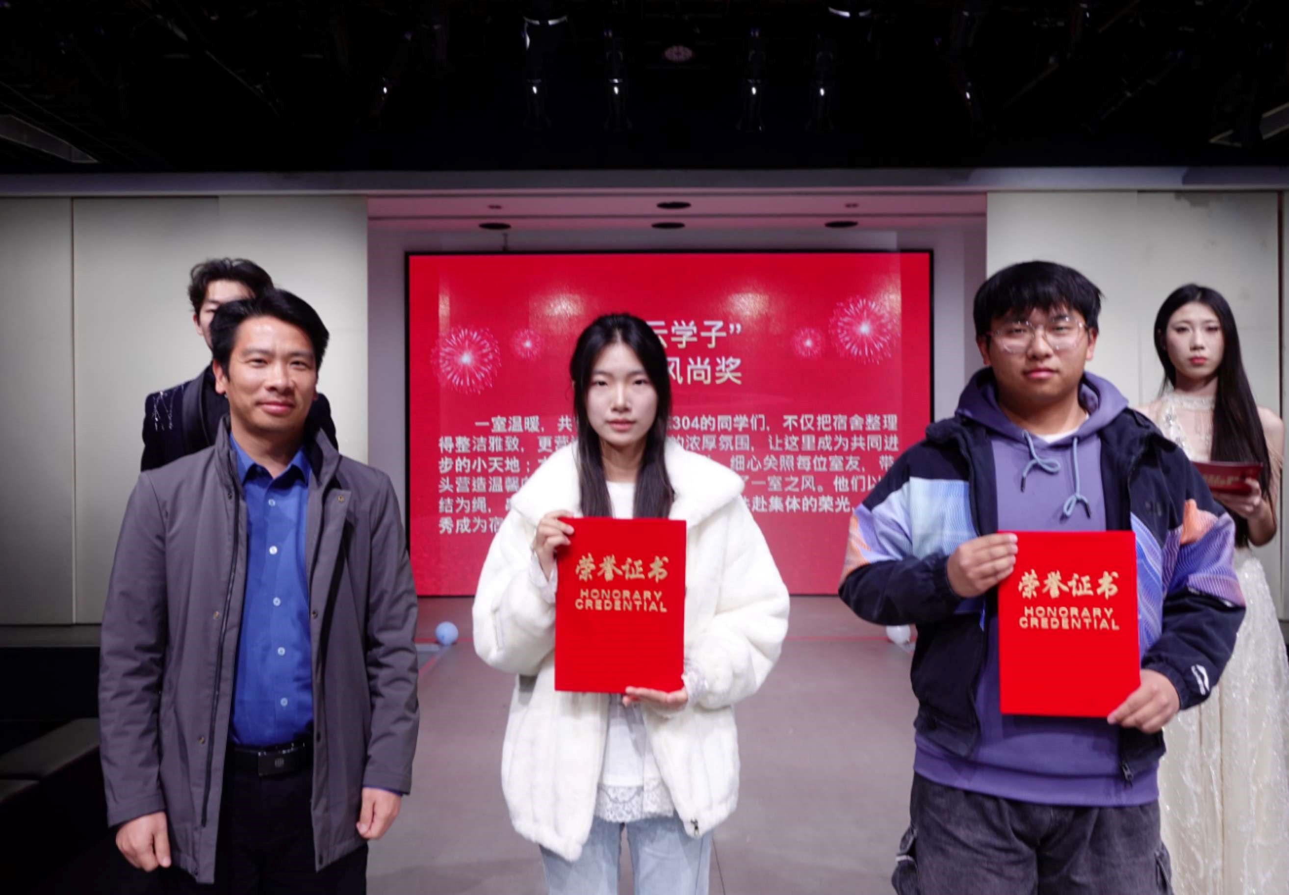晚会现场,激昂的颁奖曲悠扬响起,亲临现场的老师为获奖学子郑重颁发荣誉证书,这份荣誉不仅见证了他们日夜伏案苦读的钻研、反复打磨的执着,更承载着学院对青年一代“守正创新、笃行致远”的殷切期许。当颁奖环节在崇敬的目光与热烈的掌声中不断推进,穿插其间的新年晚会节目轮番登场,将学子们的青春活力与创意才华展现得淋漓尽致。歌曲、舞蹈、京剧、朗诵等精彩表演一次次将现场气氛推向高潮,为这个荣耀之夜增添了无限的活力与欢笑。