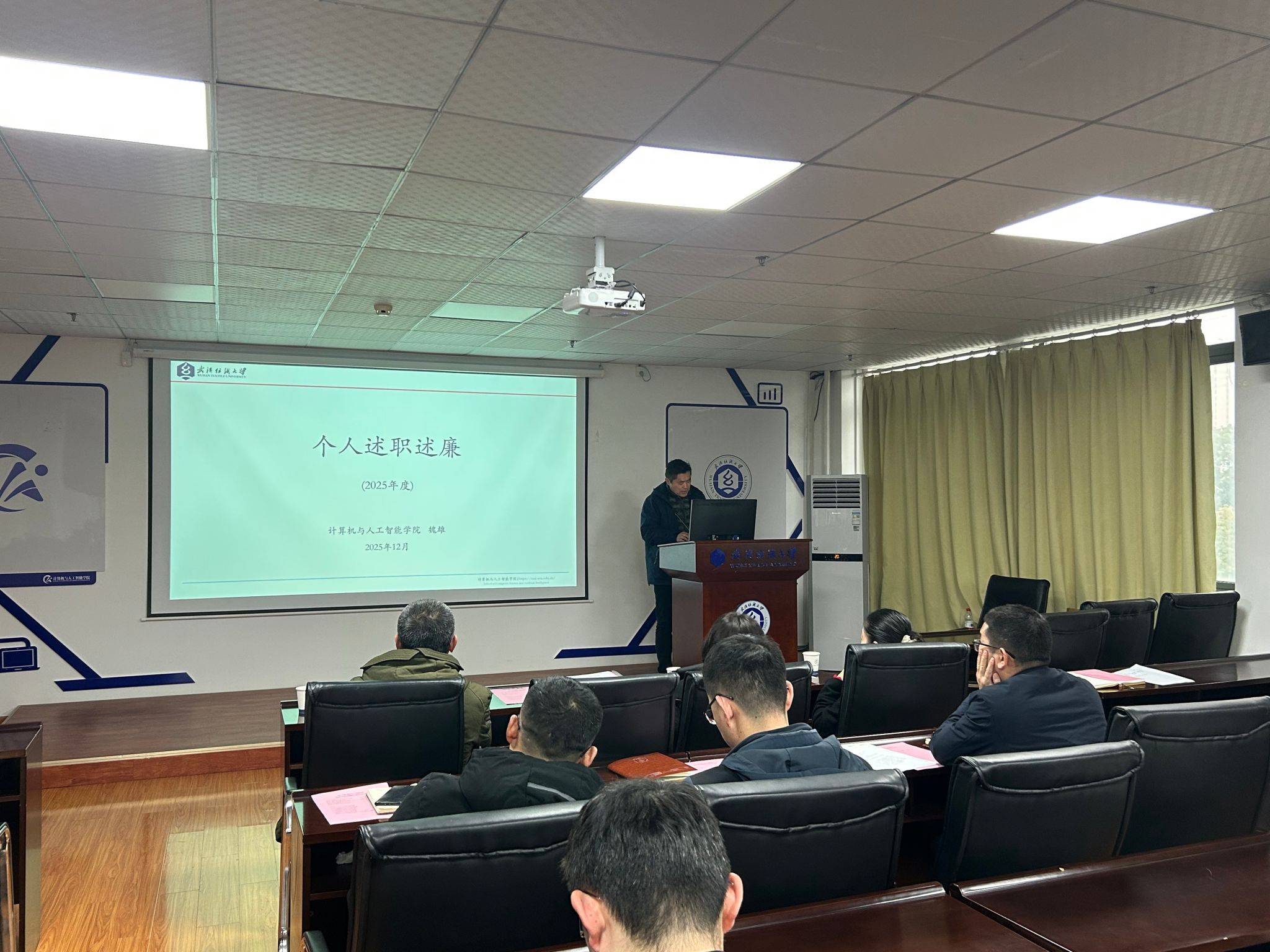 会议严格按照学校年度考核工作规范开展,首先由学院领导班子成员依次作述职述廉报告,聚焦"德、能、勤、绩、廉"五项标准,全面复盘2025年度分管工作。院长胡新荣重点汇报了学院学科建设与科研攻坚成果,详细介绍了学院在人工智能领域的突破,团队研究成果及学科发展中存在的交叉融合深度不足等问题,明确2026年将重点培育交叉创新团队,推进"AI+X"人才培养模式改革。