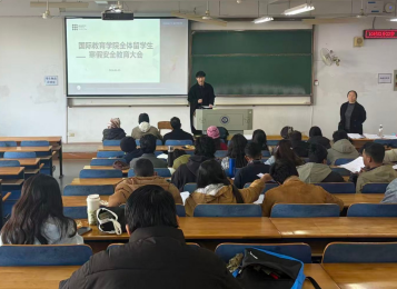 寒假将至,为守牢安全底线、欢度祥和春节,1月15日上午,在崇志楼215教室召开留学生寒假安全教育大会,国际教育学院副院长易卉、辅导员李佳星、张秋实参加会议。