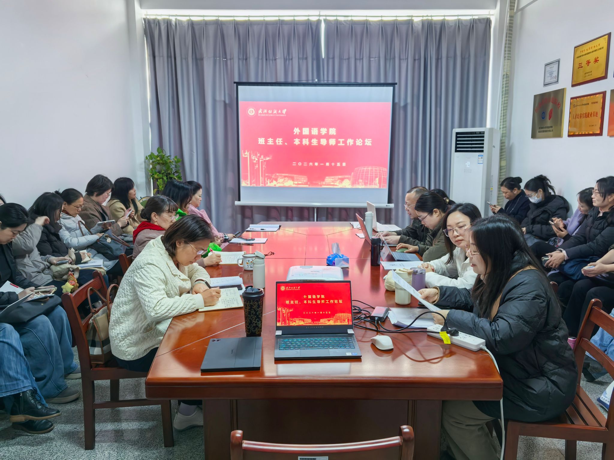 1月15日,外国语学院在崇文楼313会议室召开2025年班主任与本科生导师工作论坛。院长谭燕保教授、党委副书记彭阳慈航以及全体班主任、本科生导师参加会议。