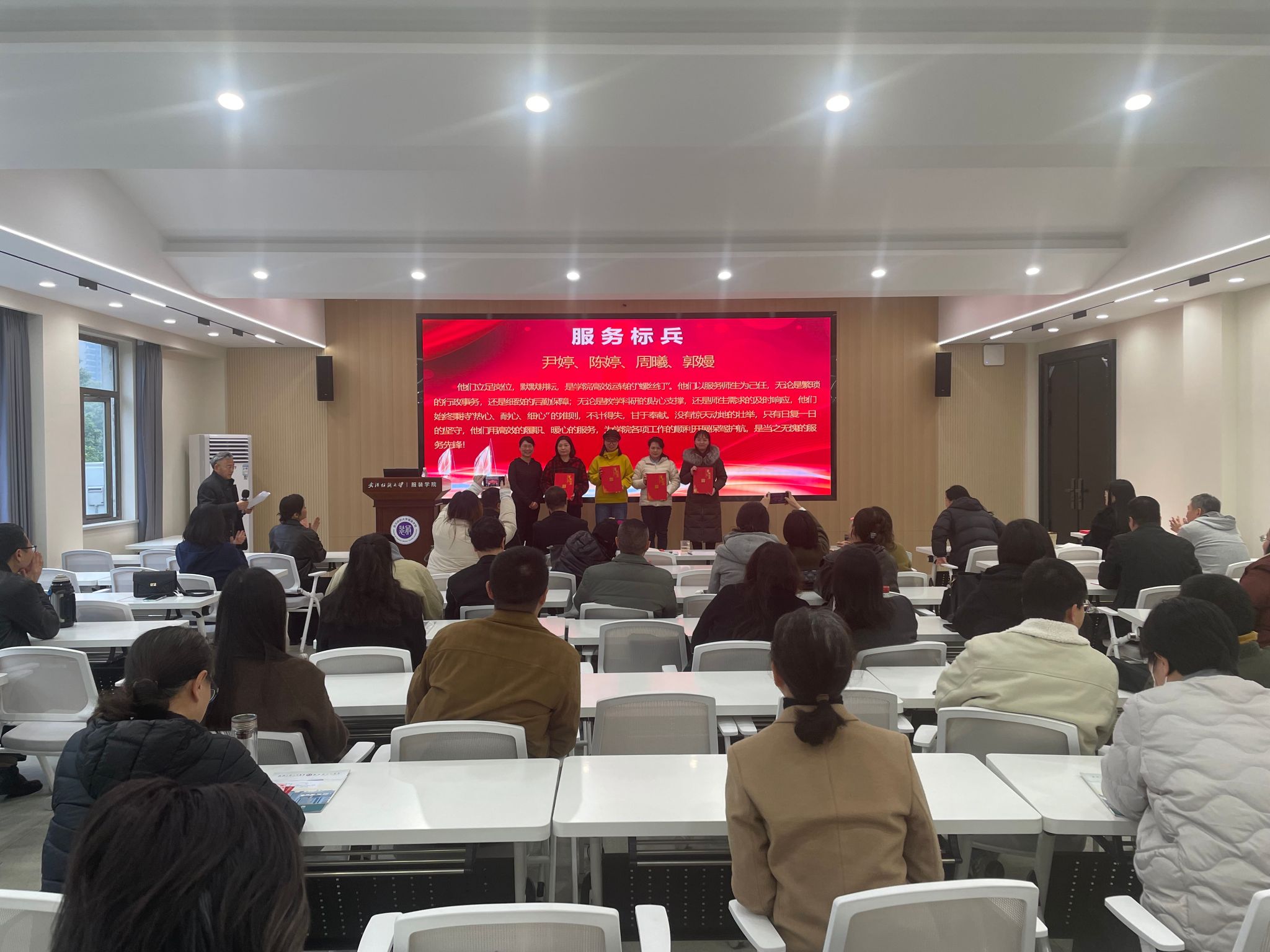 (院长陶辉为学院服务标兵颁奖)