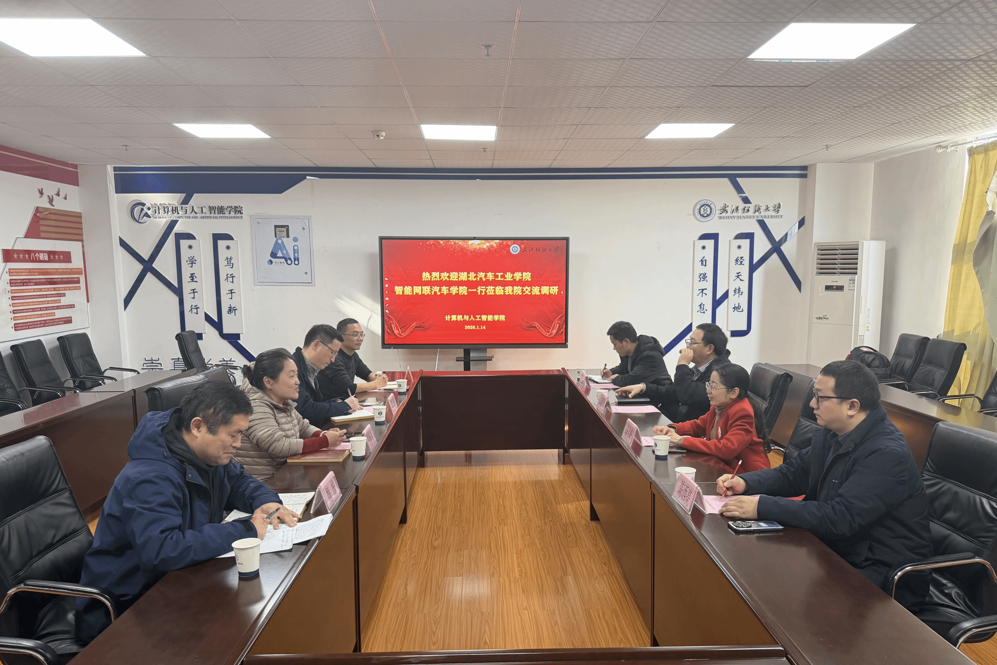 1月14日上午,湖北汽车工业学院智能网联汽车学院院长陈宇峰一行到我院进行参观交流。院长胡新荣等院领导热情接待了来访嘉宾,双方在学院会议室举行交流洽谈会。