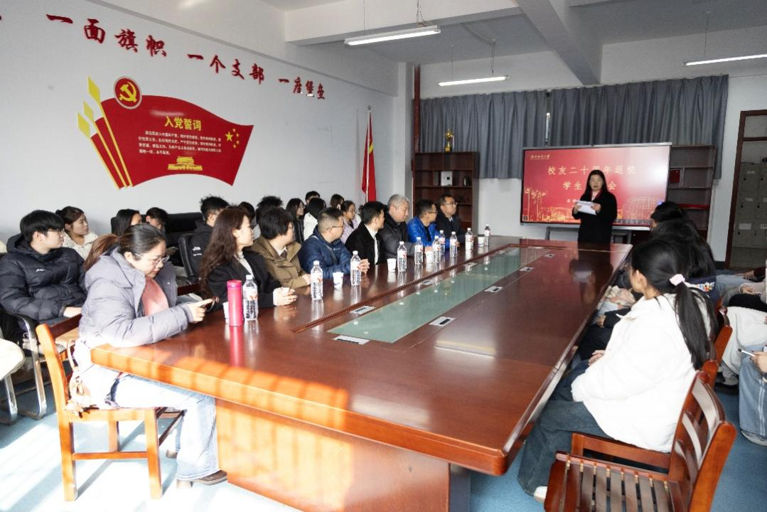 下午校友汇聚于南湖校区1号会议室,数学与统计学院信息与计算科学系01级校友毕业20周年座谈会正式举行。会议由学院党委书记李楠主持,原校长助理、研究生处处长李相朋、原数理系分党委书记黄双敬、原数理系副院长欧贵兵、原专任教师袁子厚;原辅导员刘慧,现任领导班子成员:党委书记李楠、学院副院长郑仟,党委副书记陈国鹏,教授委员会主任委员刘杰,教学指导委员会委员石先军,工会委员会主席周志刚,学院办公室主任刘文祥,学院教师董敏,以及各位校友代表共同参加。会议伊始,校友们于主教学楼门前合影留念,定格二十年后重聚的珍贵瞬间。随后,李楠书记致欢迎辞,代表学院对校友返校表示热烈欢迎,并简述学院与校友共同成长的紧密联结。学院副院长郑仟介绍了学院近年在学科建设、师资队伍、人才培养、科研成果等方面的发展成就,展现了数学与统计学院的崭新风貌。校友代表们则分享了毕业后的职业历程与人生感悟,并围绕“人才培养、校企合作、校友资源联动”等话题建言献策,为学院发展注入了宝贵的“校友智慧”。