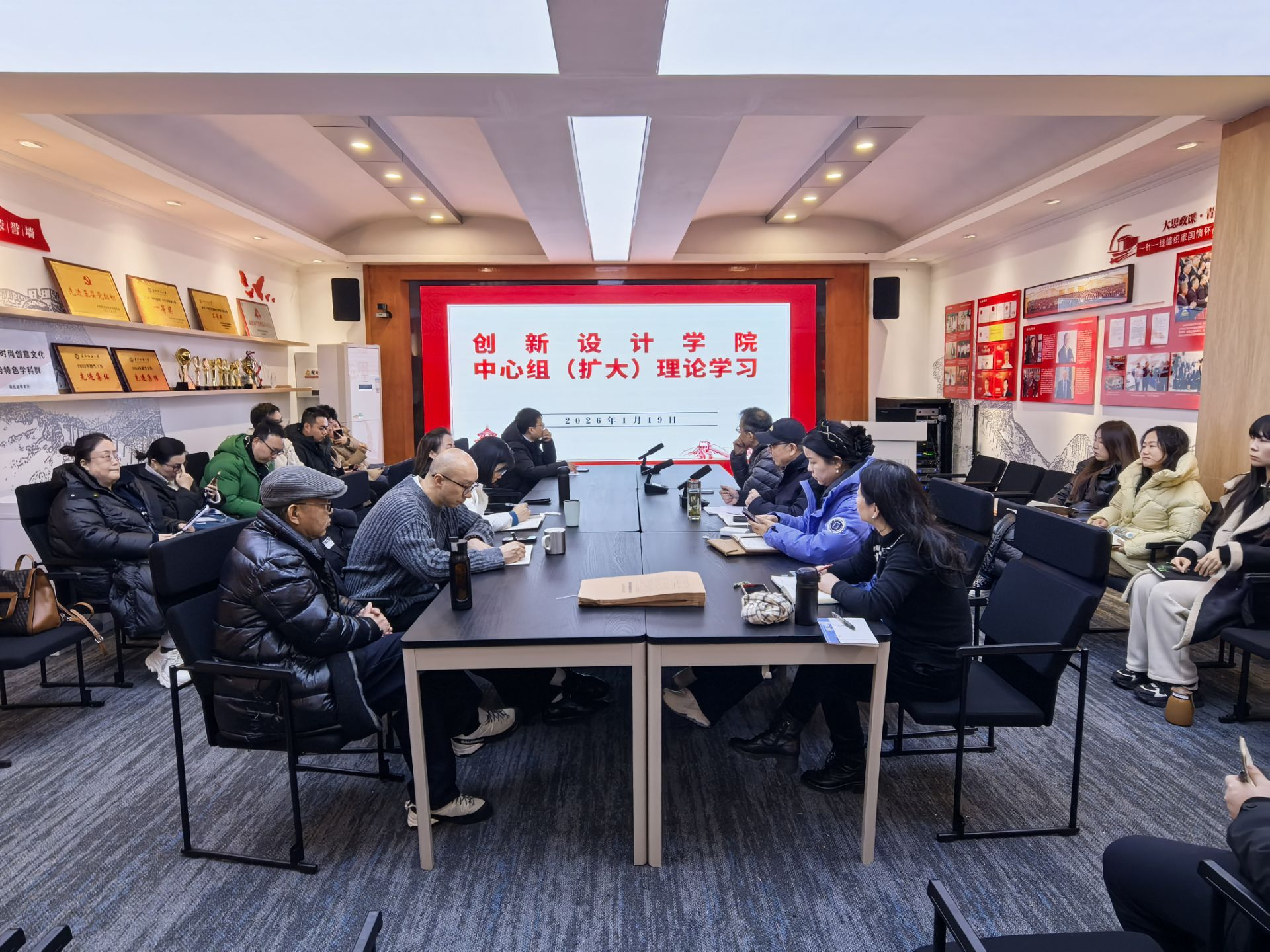 1月19日,创新设计学院召开1月份党委理论学习中心组(扩大)学习会暨2025年度民主生活会前专题学习会,重点学习习近平总书记在中央政治局民主生活会上的重要讲话精神、深入学习贯彻党的二十届四中全会精神、办好人民满意教育等。为开好年度民主生活会打牢思想基础,做好充分准备。学院领导班子、系部主任和各支部书记参加学习会,会议由学院党委书记刘元文主持,宣传委员陈畅领学。