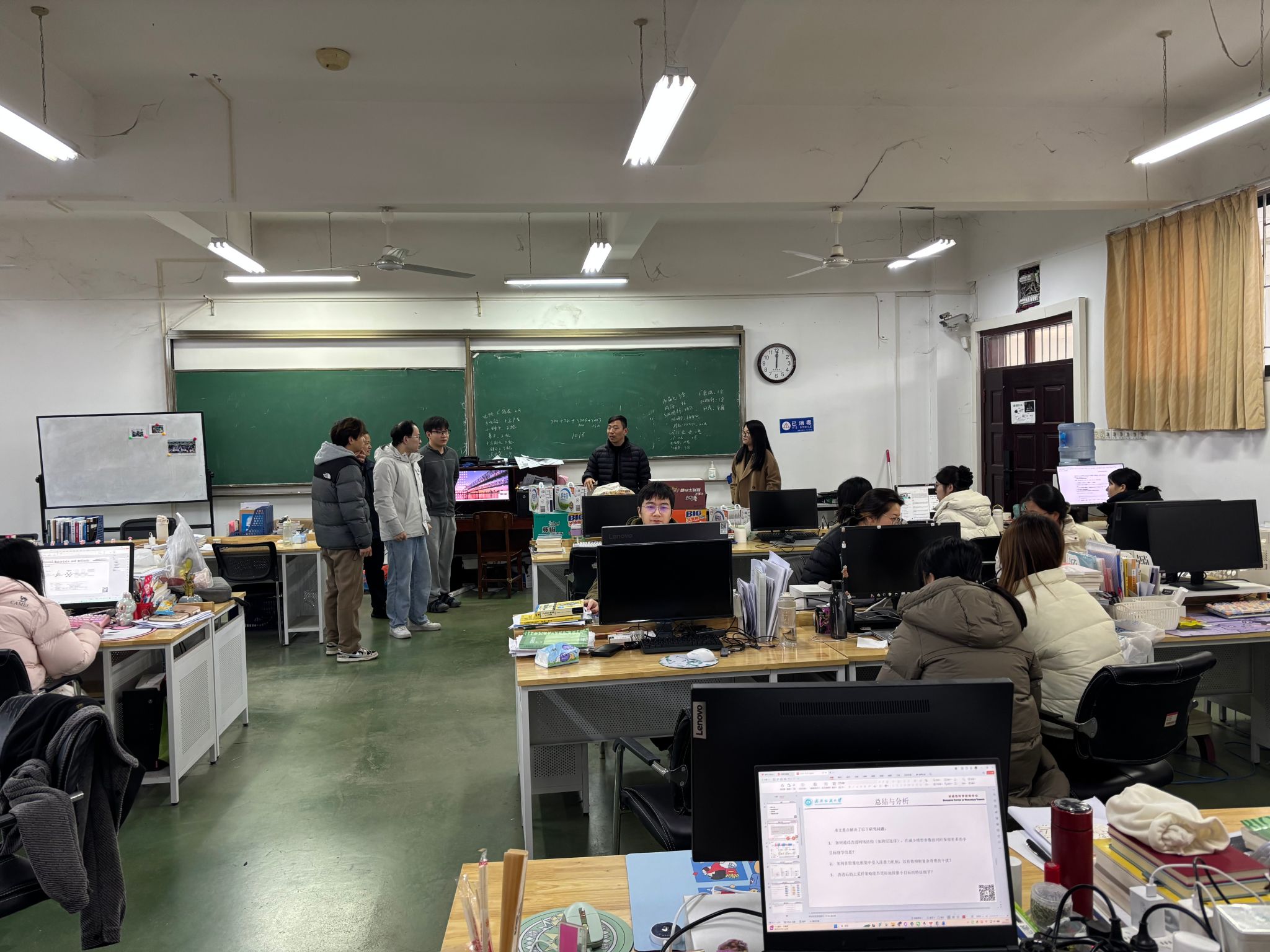 岁暮天寒,暖意不减。2026年2月2日,数学与统计学院党委书记李楠带队,副院长郑仟、党委副书记陈国鹏一行深入研究生科研实验室,开展寒假留校研究生走访慰问活动,为潜心科研的学子们送去温暖与鼓励。