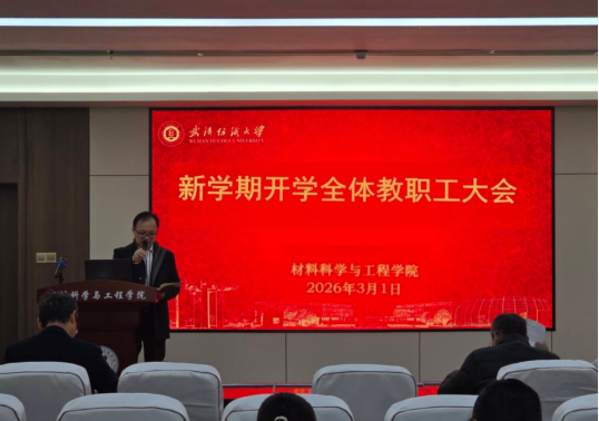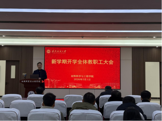 为统筹推进新学期各项工作有序开展,明确工作重点、压实工作责任,3月1日上午,材料学院召开2026年春季学期全体教职工大会。学院班子成员、全体教职工参会,会议由学院党委书记王罗新主持。会议部署开学重点工作、传达学校会议精神、提出发展要求与工作底线,为新学期工作开展指明方向。
