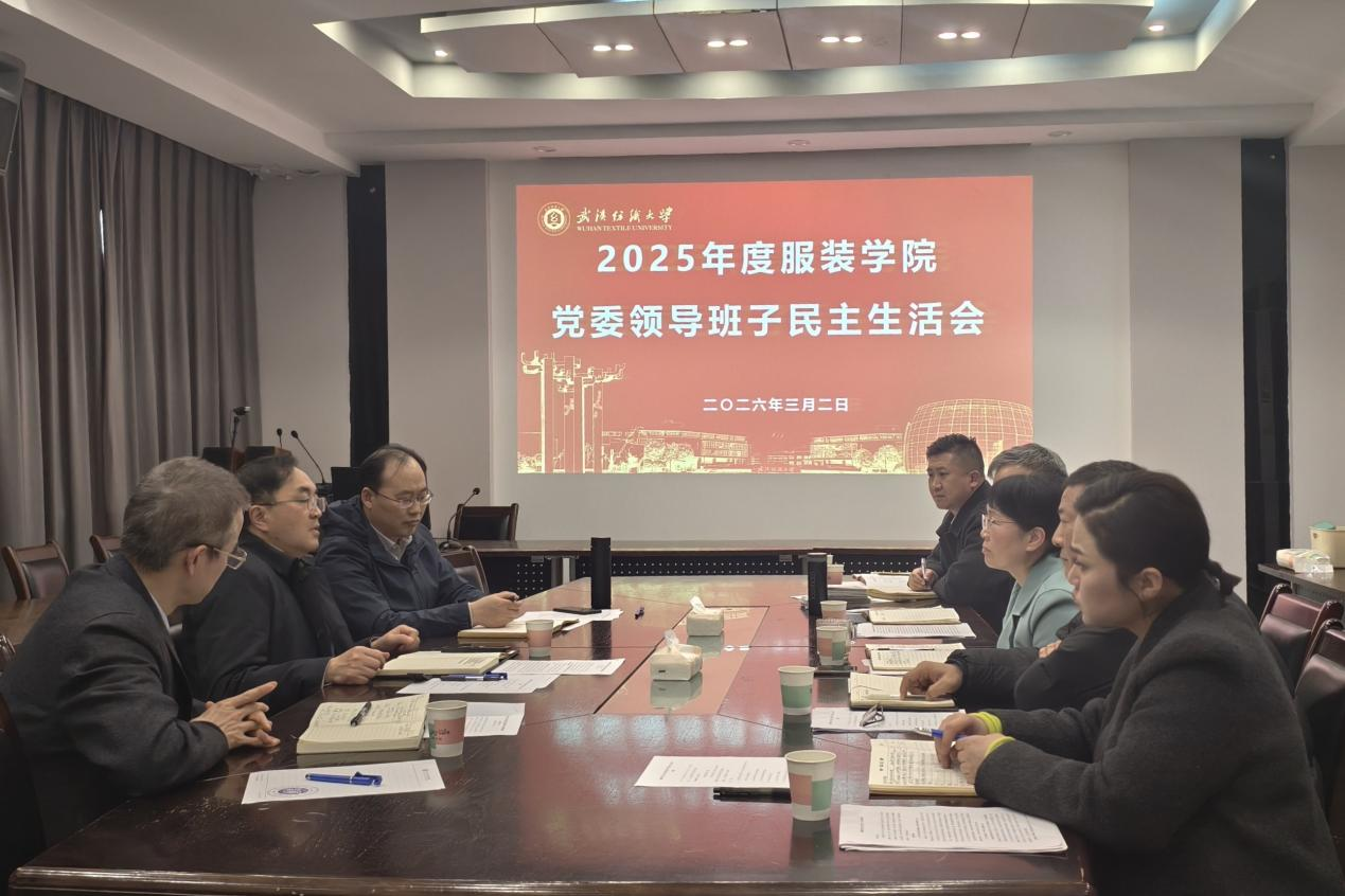 为深入学习贯彻党的二十届四中全会精神,巩固拓展中央八项规定精神学习教育成果,进一步加强领导班子自身建设,根据学校党委统一部署,3月2日下午,服装学院在南湖校区尚知楼三楼会议室召开了2025年度党委领导班子民主生活会。校长傅欣,校党委组织部部长、党校常务副校长段丁强,校纪委副书记、纪委(监察专员办公室)综合室主任段溢波到会指导。会议由学院党委书记杜新年主持,学院领导班子全体成员参加会议。