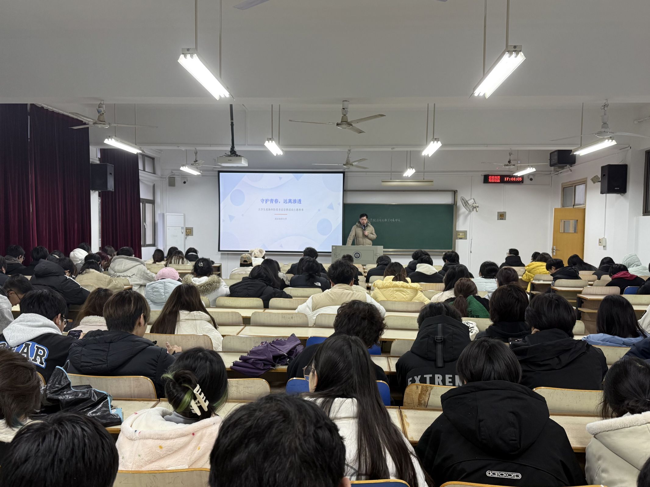 为筑牢校园安全与思想防线,辅导员、班主任通过政策解读、案例分析等方式,向同学们普及宗教政策法规,阐明非法宗教活动的危害与表现形式,引导同学们树立正确的世界观、人生观、价值观,自觉抵制各类非法宗教渗透,维护校园和谐稳定与安全秩序。