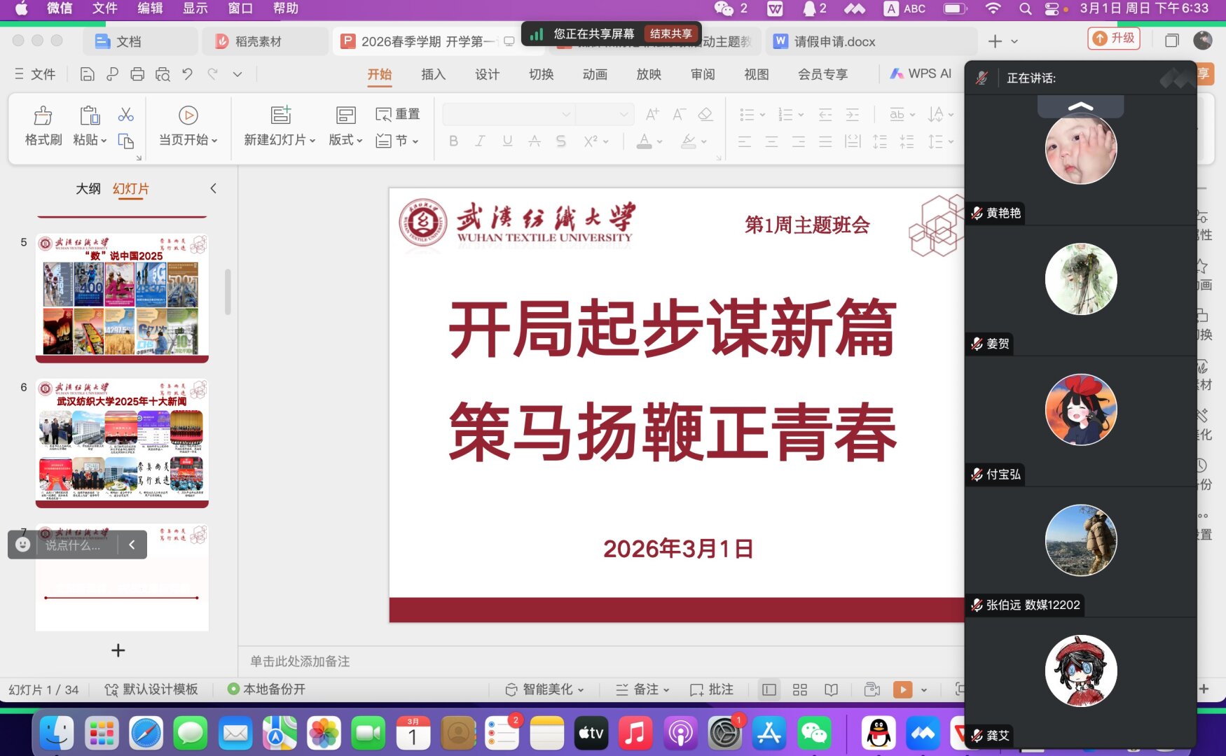 为引领青年学子以昂扬姿态开启新学期征程,3月1日晚,设计学院各班级召开“开局起步谋新篇,策马扬鞭正青春”主题班会。班会由各年级辅导员、班主任主持,全体学生共同参与。