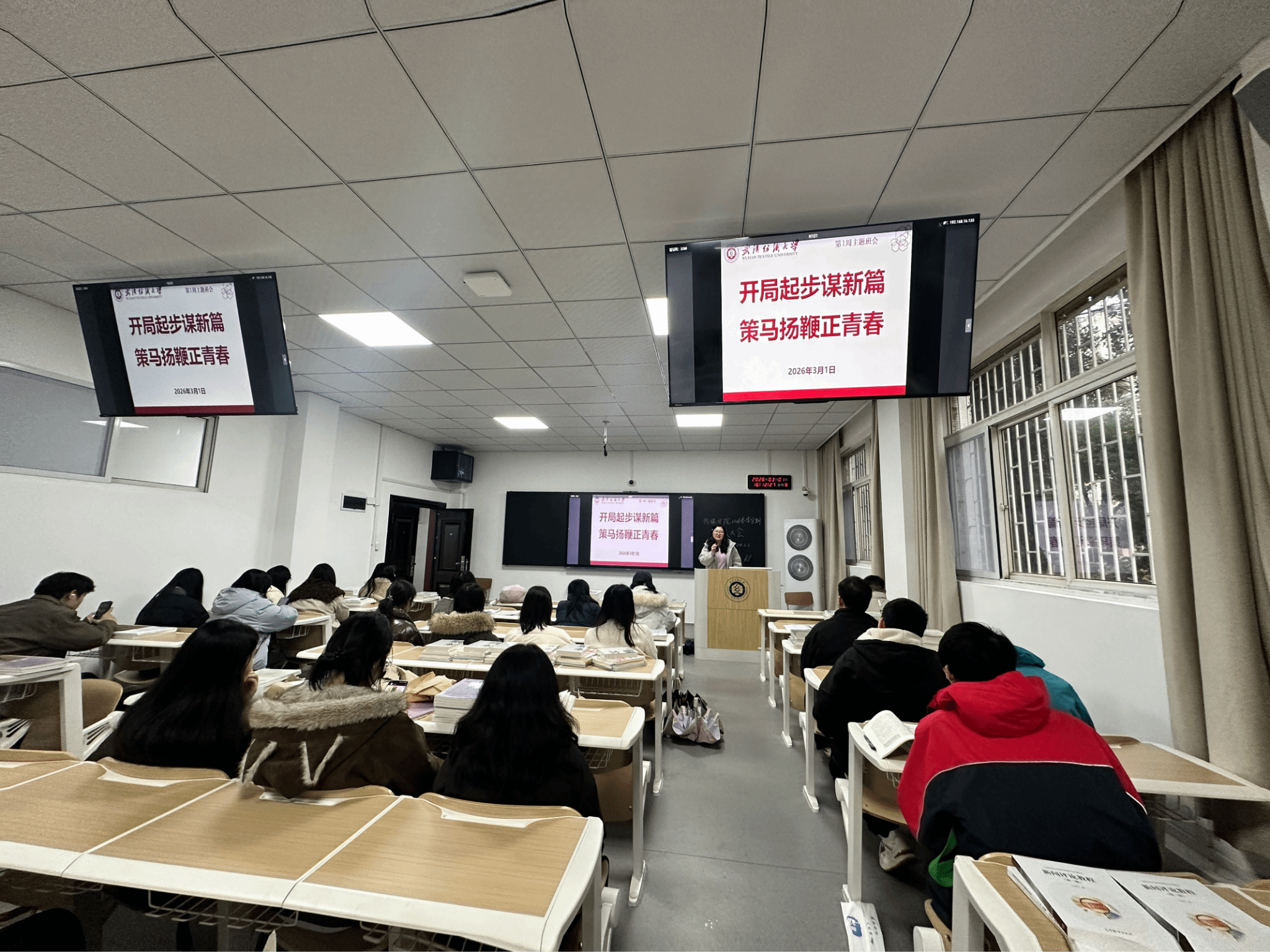 辅导员、班主任结合“十五五”开局之年时代背景,向同学们解读国家发展蓝图与青年责任担当,鼓励大家立足新起点、把握新机遇,将个人理想融入国家和民族事业之中,为强国建设、民族复兴贡献力量。同时,围绕新学期适应与成长,班主任引导同学们及时调整状态、明确学习目标、做好学业规划,以严谨务实的态度投入专业学习与实践创新,在勤学苦练中增长才干、锤炼本领。