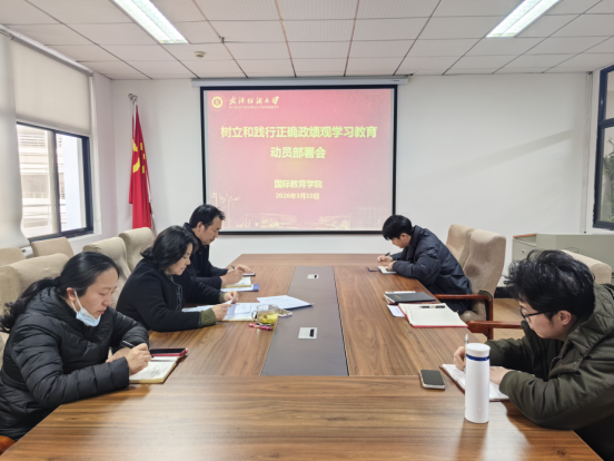 最后,陈桂枝结合国际教育学院办学特色、人才培养、国际交流与日常管理等实际情况,对学院学习教育进行了具体部署、细化安排。会议强调,全体教职工要提高政治站位,把正确政绩观融入立德树人根本任务全过程;要坚持问题导向,聚焦国际教育工作重点难点,以实干实绩推动学院高质量发展;要强化责任落实,确保学习教育组织到位、措施到位、成效到位,以优良作风与扎实工作助力学校事业发展,服务国家对外开放与教育国际化大局。