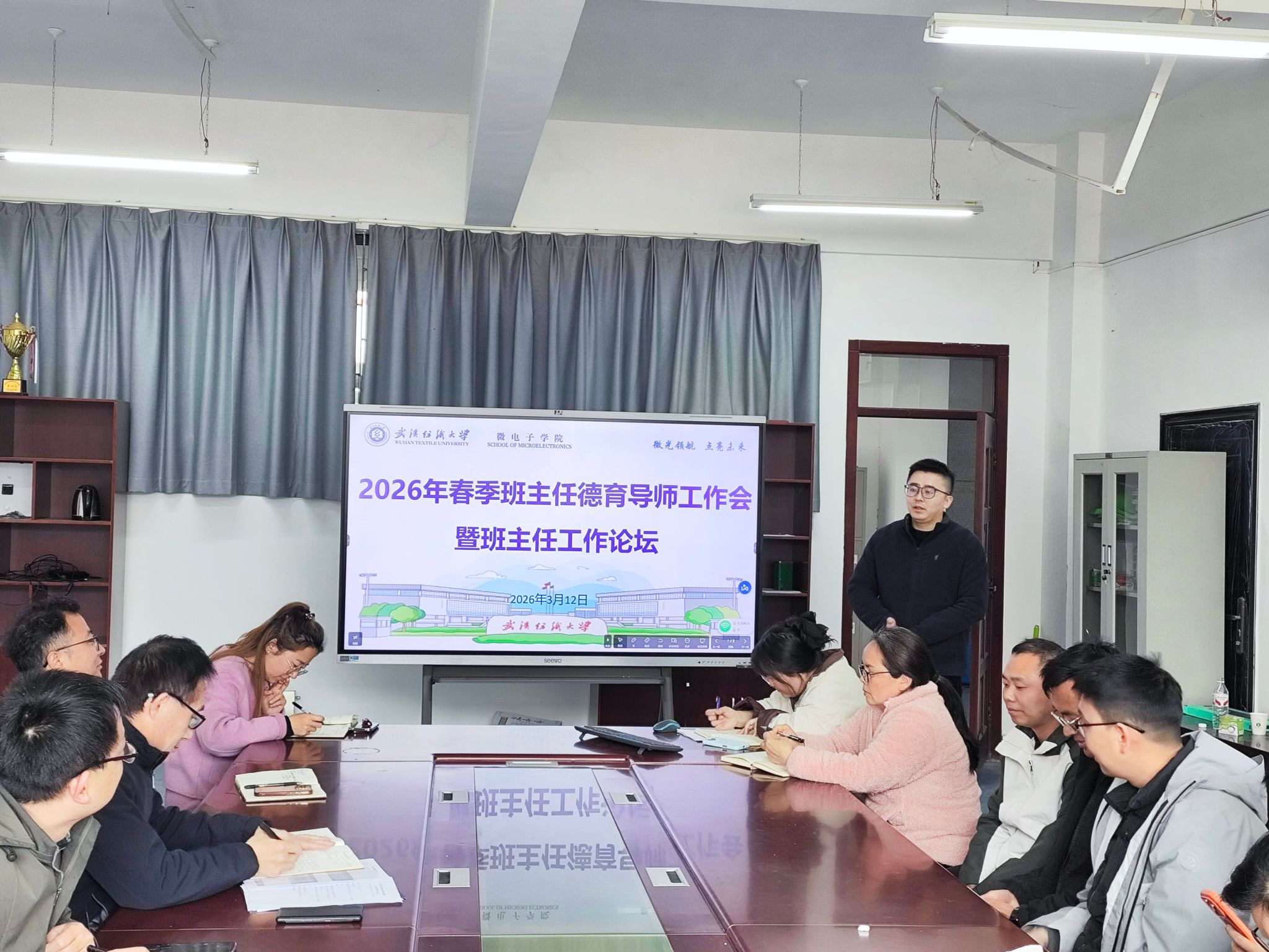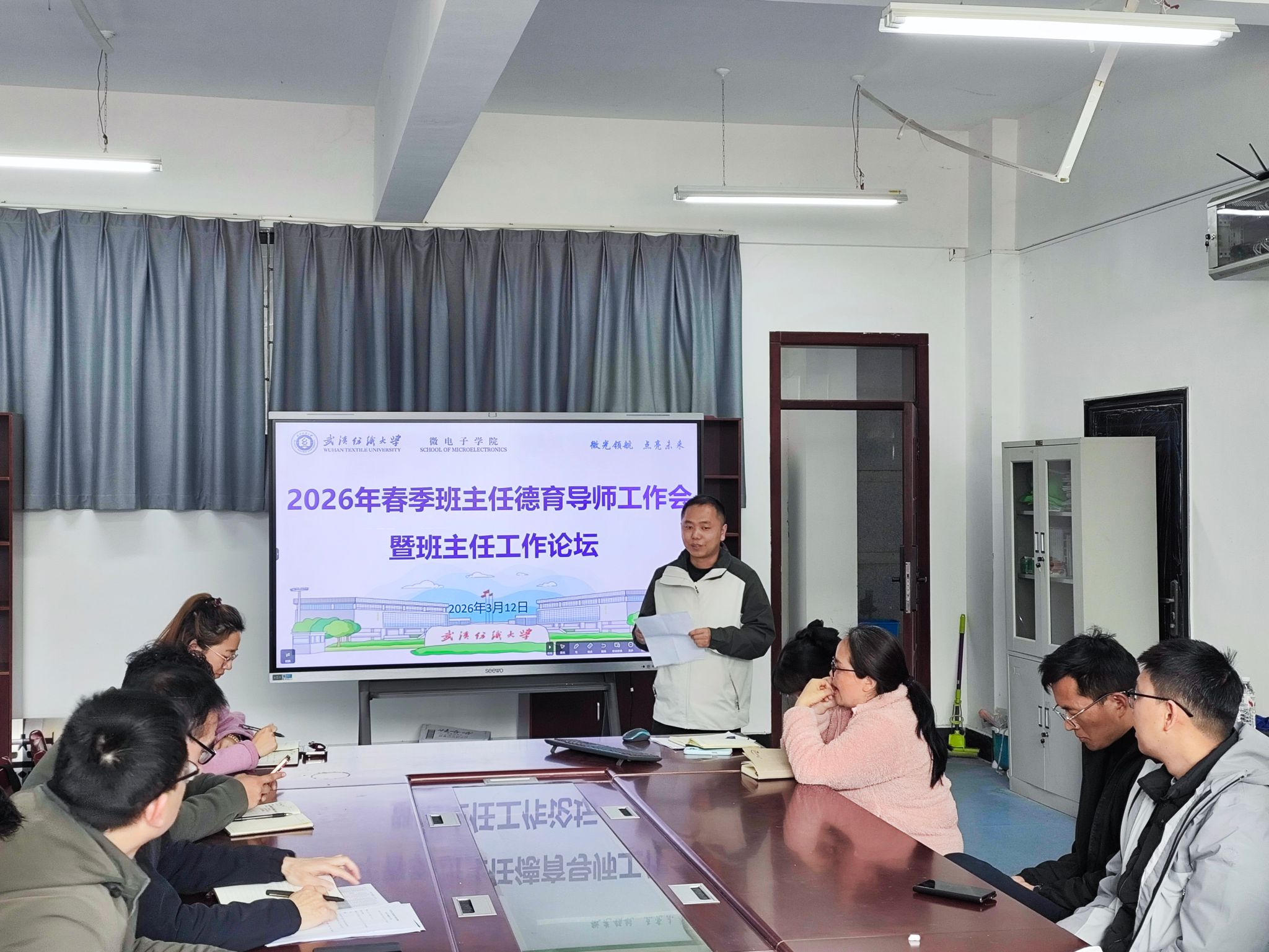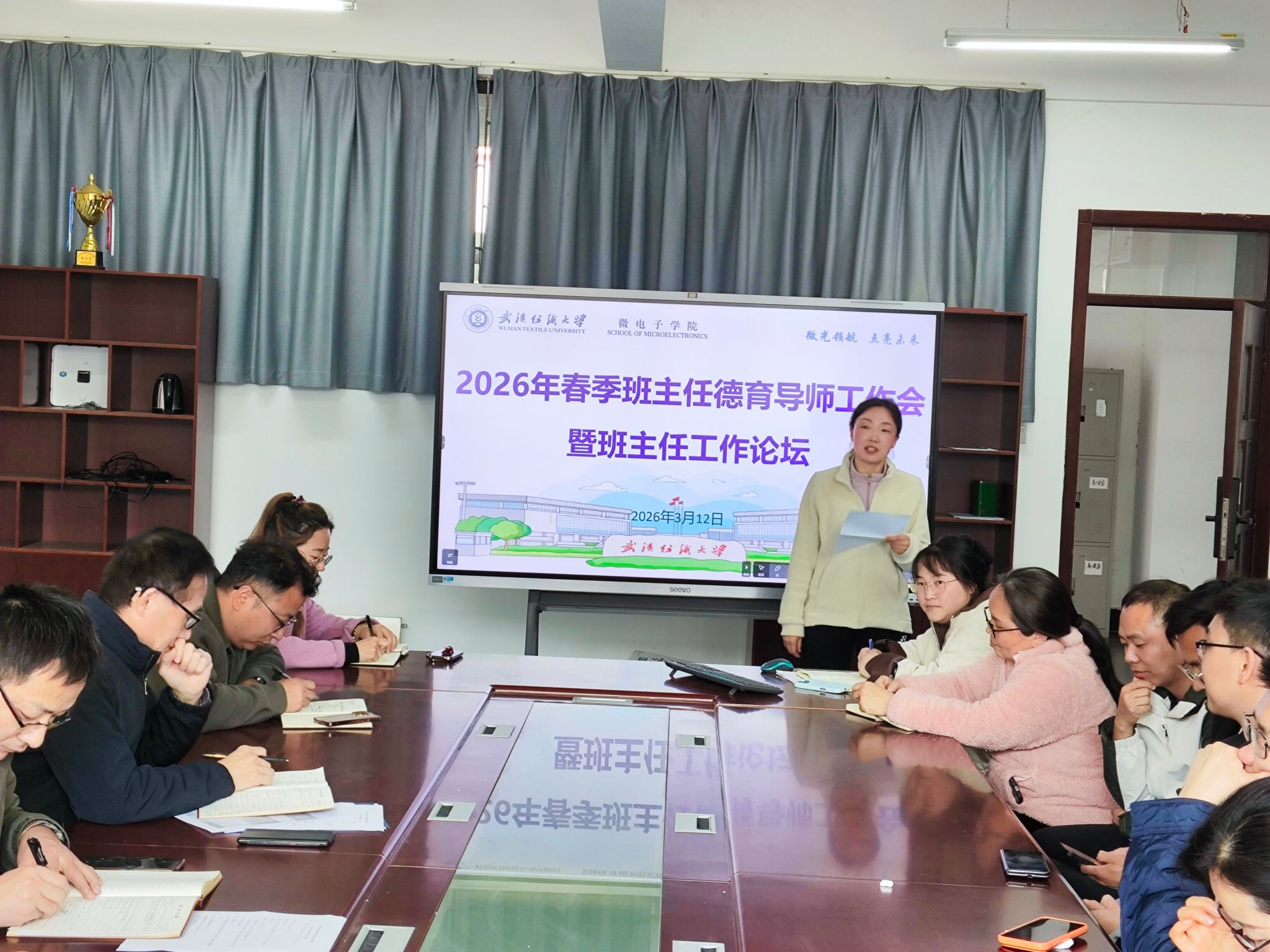3月12日下午,微电子学院在崇文楼102会议室召开2026年春季班主任德育导师工作会暨班主任工作论坛。学院党总支书记周平、副书记古江波、全体班主任及辅导员参加会议。
