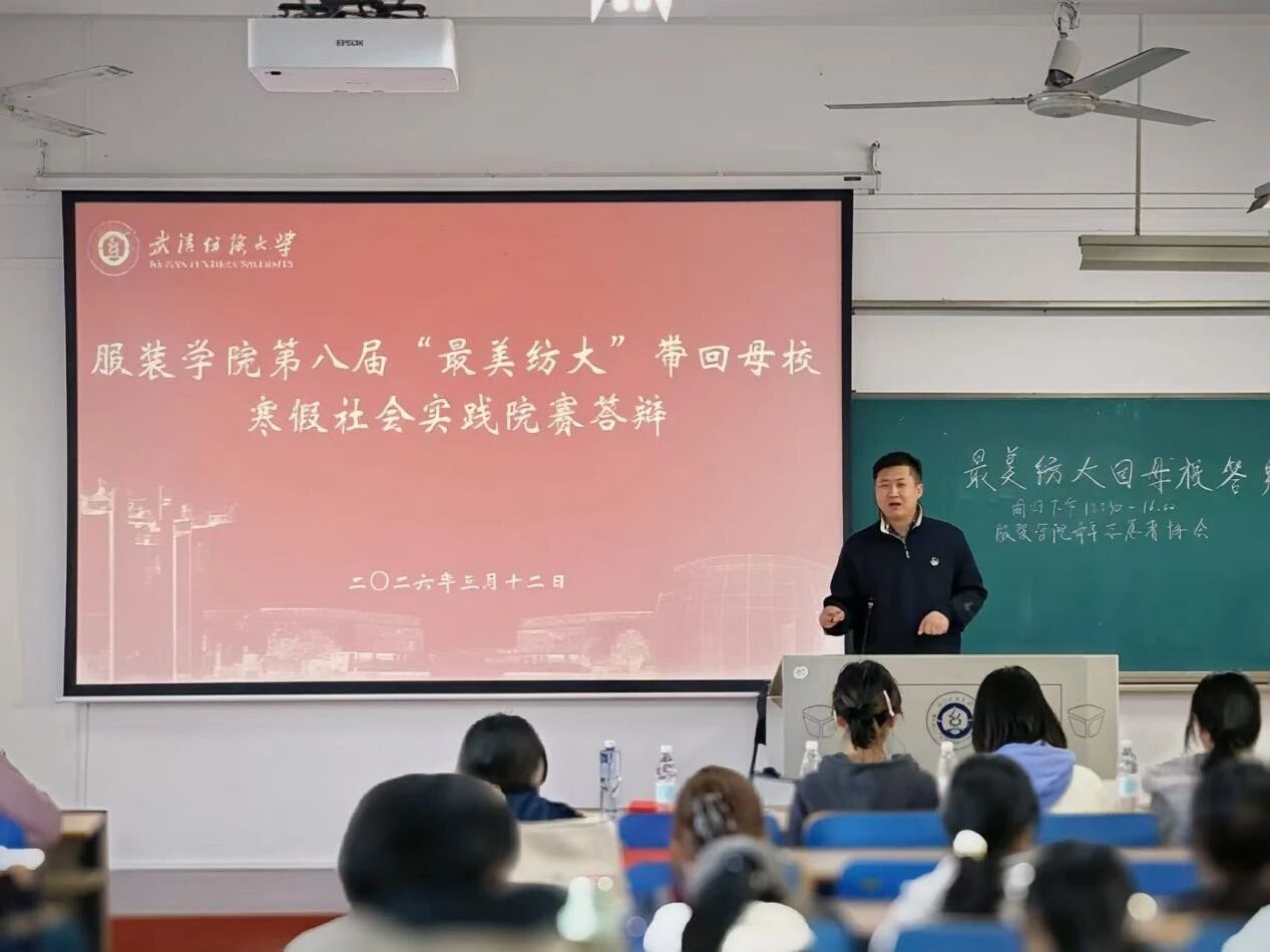 3月12日下午,服装学院青年志愿者协会在南湖尚知楼308顺利举办第八届“最美纺大带回母校”2026年寒假社会实践院赛答辩。来自不同年级、共24个答辩队伍汇聚一堂,展示实践成果。比赛邀请了服装学院党委副书记郭泰辰老师、学院团委周曦老师、各队伍指导老师和高年级有实践比赛经验的学长学姐出席活动并担任评委。