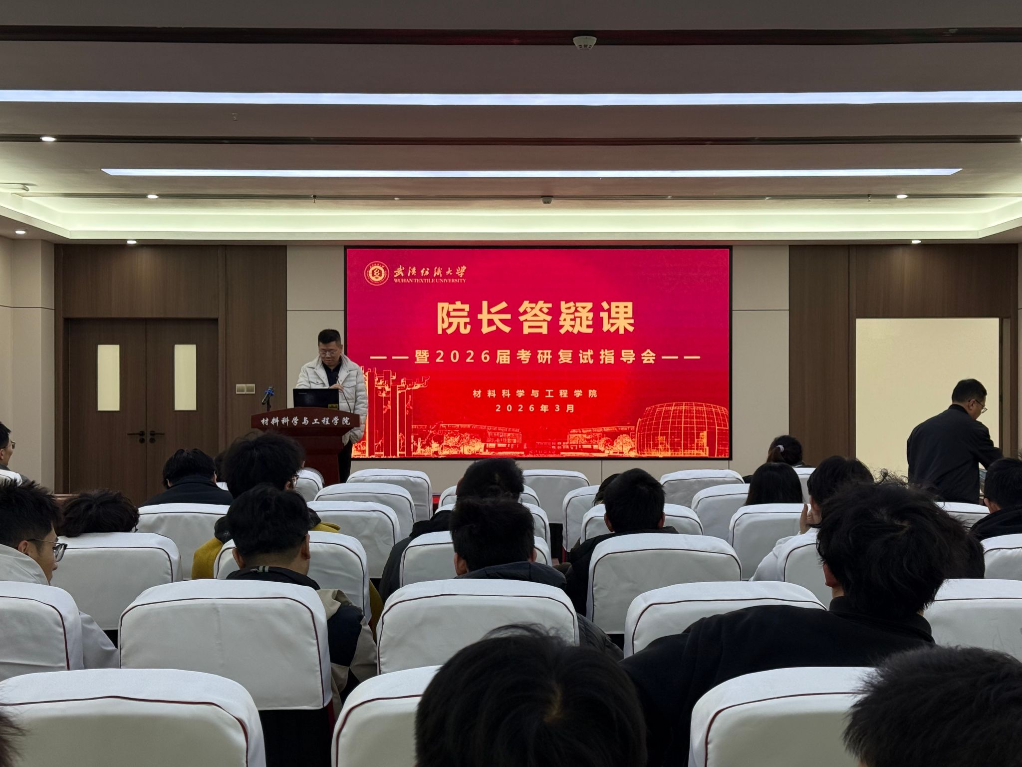 为助力 2026 届考研学子精准把握研究生复试政策流程、熟练掌握复试应试技巧、全面提升复试综合能力、有效缓解备考心理压力,材料学院于3月18日在学院317会议室成功举办院长答疑课暨2026届考研复试指导会。材料学院副院长刘欣、2026届考研学生参加会议,本次会议由学院党委副书记魏剑主持。