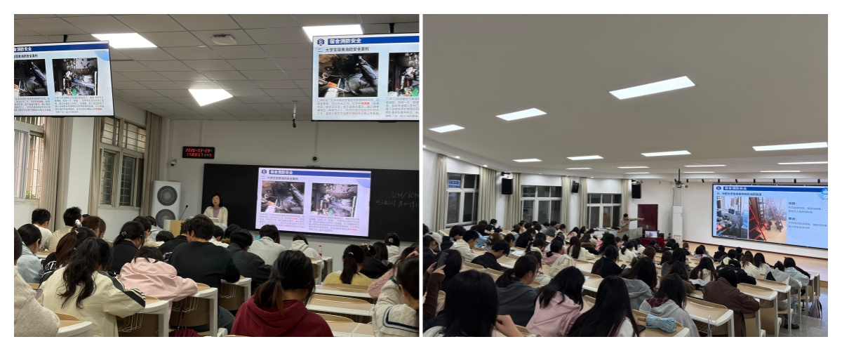 班会结合清明节放假安排,提醒同学们提前做好出行规划,严格遵守交通规则,注意防范野外火灾、财物遗失和电信诈骗。班会围绕宿舍消防安全开展专题教育,老师们结合高校宿舍火灾典型案例,引导学生对照宿舍消防安全检查清单自查自纠,严禁电动车飞线充电、宿舍内堆积易燃杂物等危险行为。此外,班会还强调了春季传染病防控、网络信息安全、食品安全等注意事项,提醒同学们养成良好卫生习惯,理性上网,提高自我保护能力。