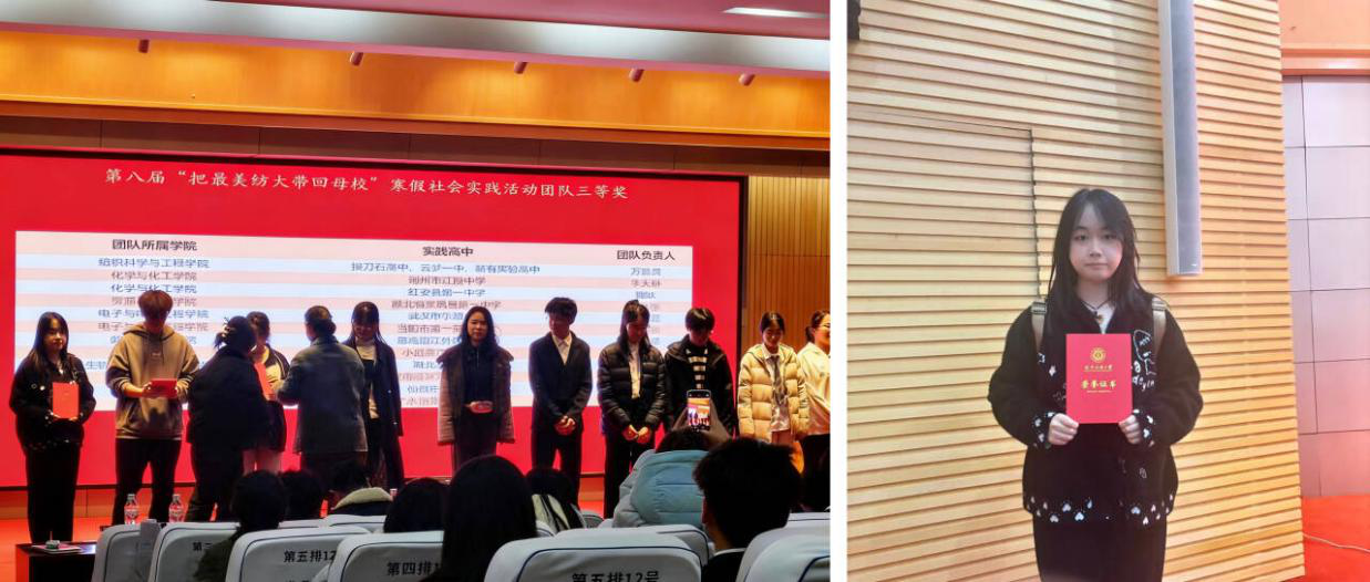 为深入推进实践育人工作,加强高校与高中育人衔接,助力学校优质生源吸引,3月26日,由材料学院主办的第八届“把最美纺大带回母校”寒假社会实践公开答辩会在阳光校区国际学术报告厅圆满举行。创新设计学院高度重视、精心组织,积极选派学生参与,最终凭借扎实的实践成效和出色的答辩表现,荣获本次答辩会三等奖。