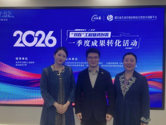 3月26日,2026年“双百工程”暨“武创荟”一季度成果转化活动在湖北省先进纤维材料综合型技术创新平台圆满举行。我校楚蓝新生、凝光芯片两个创新创业项目亮相本次活动,以优质科研成果参与现场路演,充分彰显学校在创新创业领域的坚实成果与核心优势。