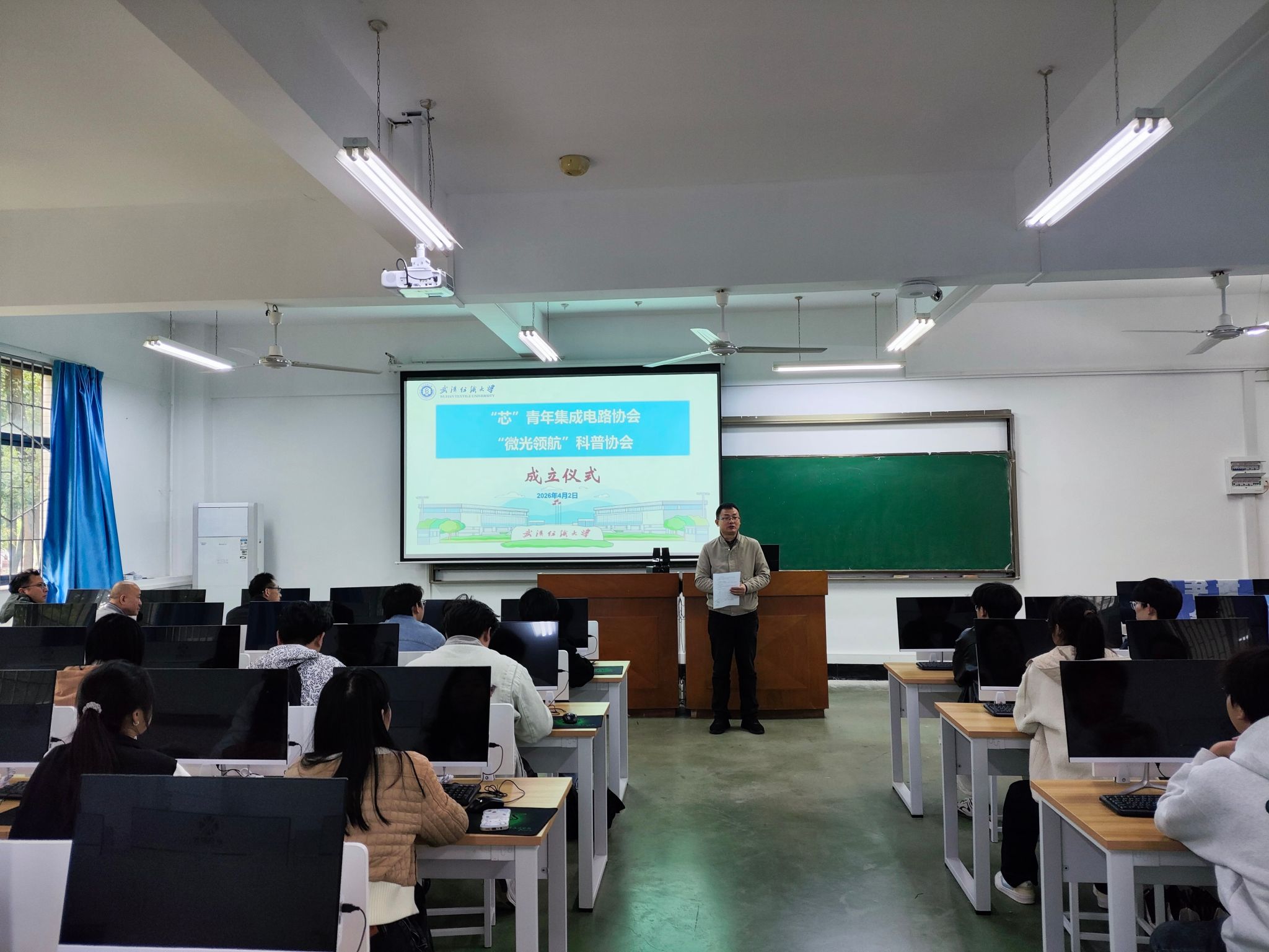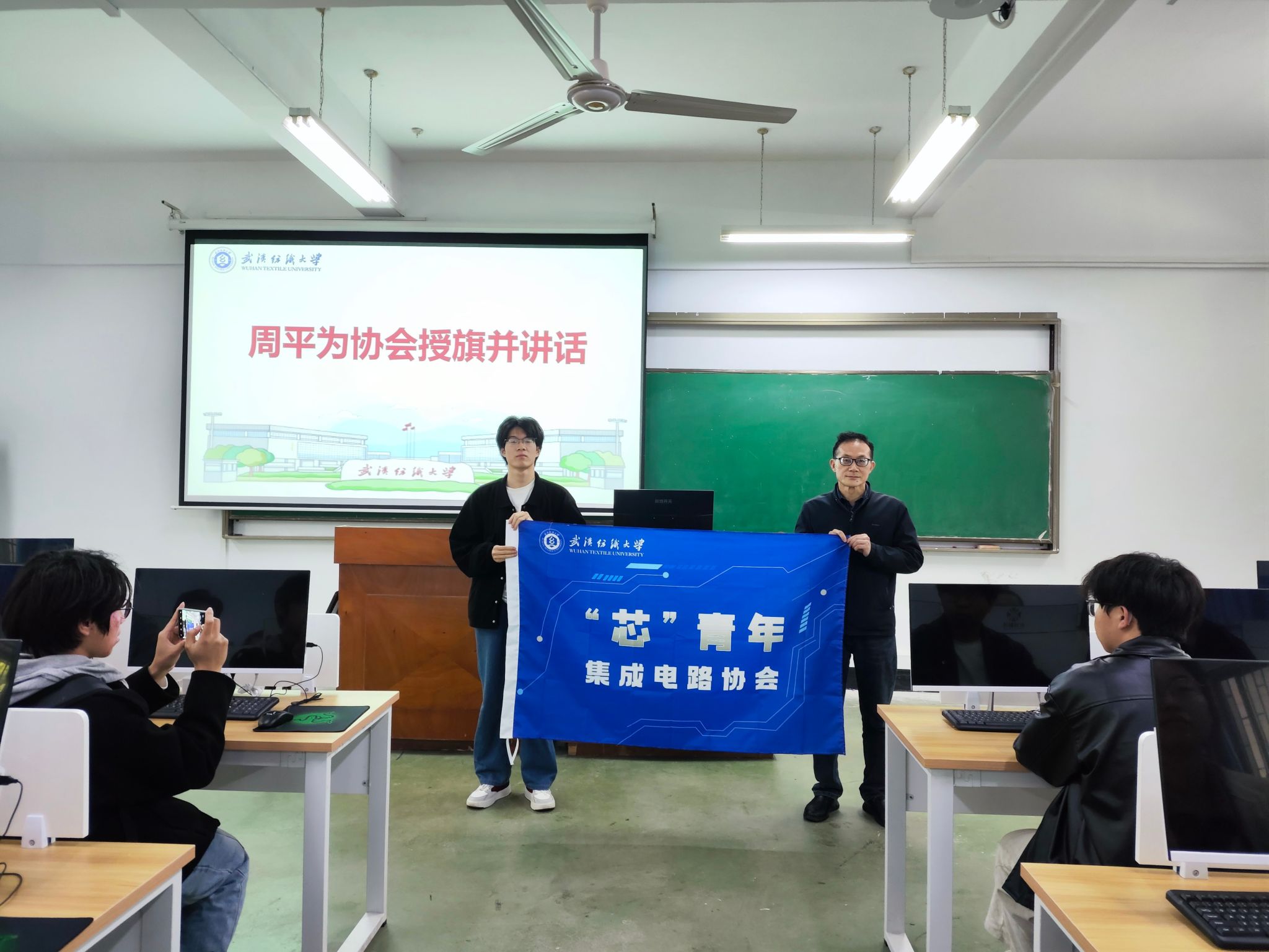4月2日中午,微电子学院“芯”青年集成电路协会与“微光领航”科普协会成立仪式在崇文楼4-104举行。学院党总支书记周平、副书记古江波,协会指导老师王江涌教授,曾中良老师、方林老师及全体协会会员学生出席仪式。
