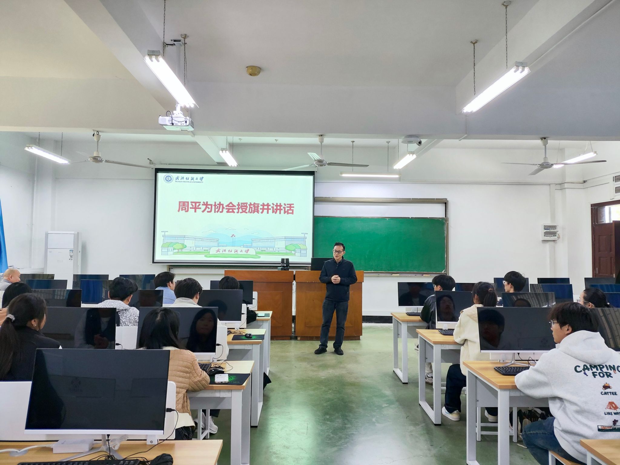 仪式上,周平首先为两个协会授旗,正式宣布协会正式成立。他分享了自己的大学社团经历,回忆了学生时代参与社团活动对自己成长的帮助,同时强调学业始终是学生的第一要务,勉励同学们珍惜大学时光,在夯实专业基础的同时,大胆投身协会工作与实践探索。周平表示,学院将为两个协会提供全方位的资源支持,鼓励同学们放开手脚、勇于创新,在集成电路科创、科普领域做出特色、做出成绩。