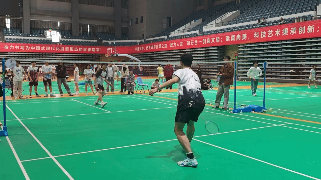 单打赛场,选手们尽展青春锋芒。有人弓步低接、稳扎稳打;有人跃起扣杀、干脆利落。每一次精准吊球都暗藏巧思,每一回迅速变线都牵动全场目光,青春的锐气在一来一回中尽数释放。双打赛场则是默契的舞台,队友间攻防轮转,补位、挡网、衔接一气呵成,磨合中生长的信任让每一轮配合都愈发流畅。与此同时,赛场边的欢呼与掌声从未停歇:当选手飞身救起界外球时,看台爆发出惊叹;当双打组合以精妙战术拿下关键分时,队友们在场边击掌鼓劲。穿梭的羽球、跃动的身影,将场馆里的青春气息燃至沸点,也让这场比赛成为学生挥洒热爱,定格成长的热血记忆。