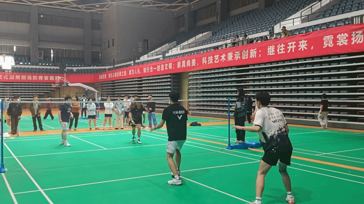 3月28日上午,阳光校区体育馆内,武汉纺织大学“纺大杯”羽毛球赛的哨声准时响起。“新羽轻飞绕场间,挥拍带劲志气扬”,随着裁判手势落下,首发选手轻抛羽球,挥拍发球,白色球影贴网而过,划出利落弧线,在场地两端来回跃动——一场属于的热血较量,就此展开。