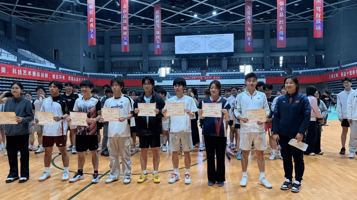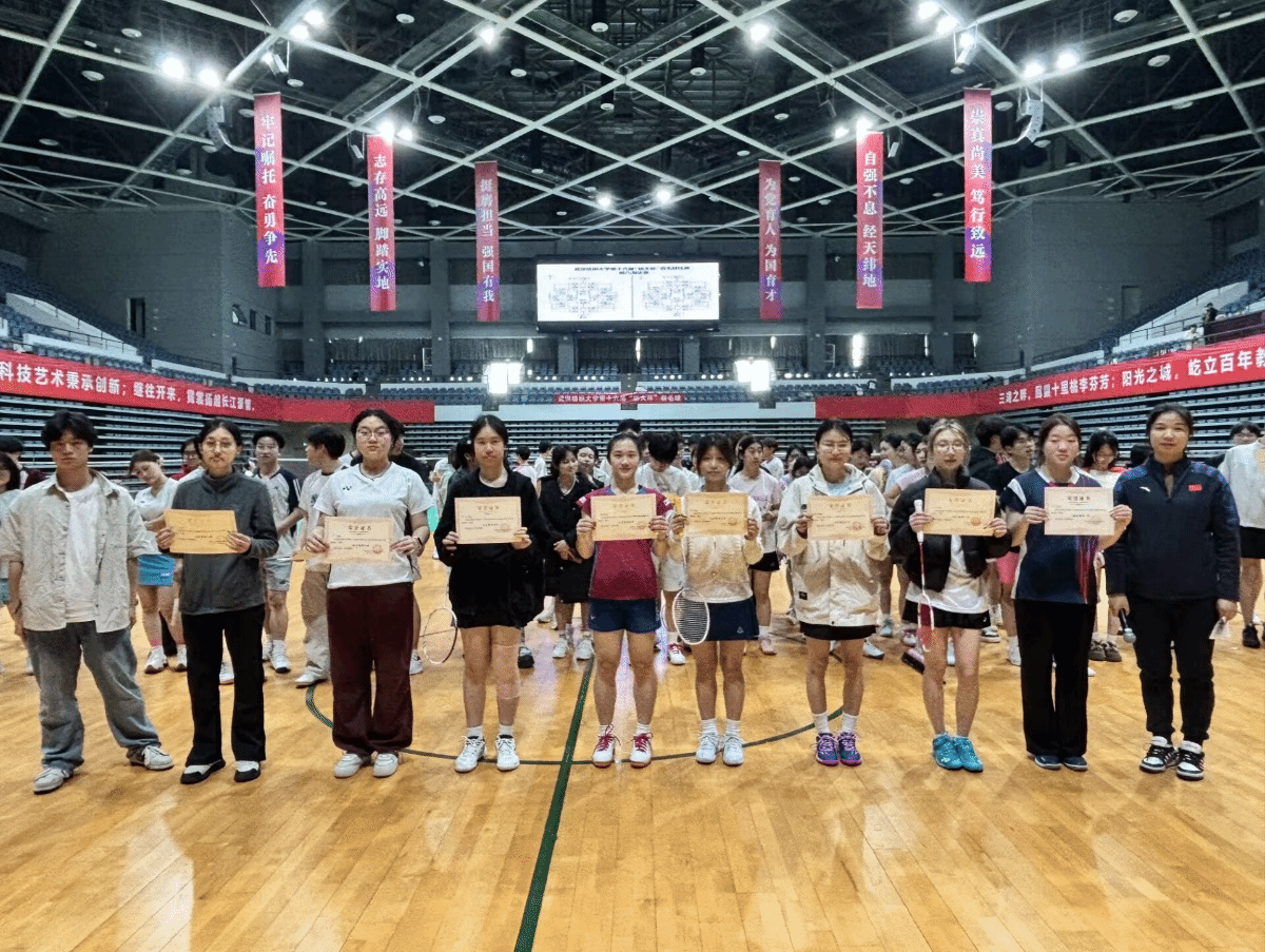 此次“纺大杯”羽毛球赛已圆满落幕。对选手而言,这场比赛的意义远不止于名次——它是赛场上并肩协作的默契,是比分胶着时咬牙坚持的韧劲,更是以球会友、跨院交流的热忱!这片属于大家的赛场,是他们融入校园生活的生动写照,也让蓬勃朝气在体育馆内尽情飞扬。在此,也向为本次赛事辛勤付出的李雯老师与张易慧老师致以诚挚感谢,你们的悉心指导与统筹安排,为比赛的顺利举行提供了坚实保障。今日,他们在羽毛球起落间初展锋芒;未来,这份赛场上的坚韧与热爱,必将转化为成长的力量,在更广阔的舞台上绽放光彩!
