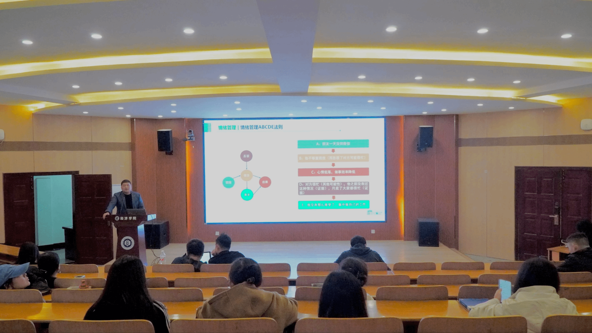 为进一步加强教师队伍心理健康建设,提升教职工心理素养与育人能力,4月9日,经济学院于崇德楼T301报告厅举办“暖心赋能,匠心育人”教师心理健康专题讲座。讲座由学校心理健康教育中心专职教师张万里主讲,学院党委副书记李静宇主持,学院领导班子、辅导员、德育导师和本科生班主任参加培训。