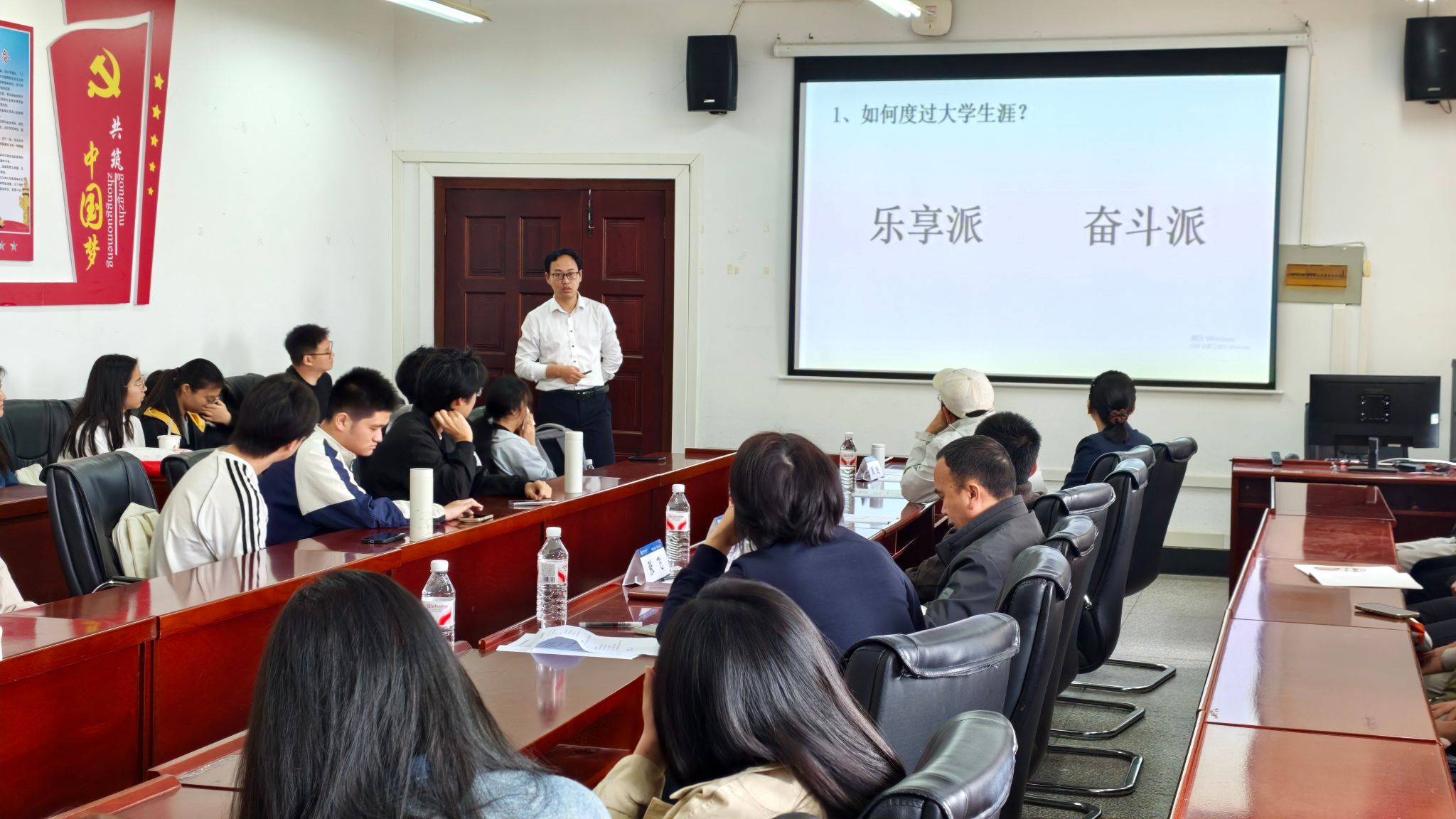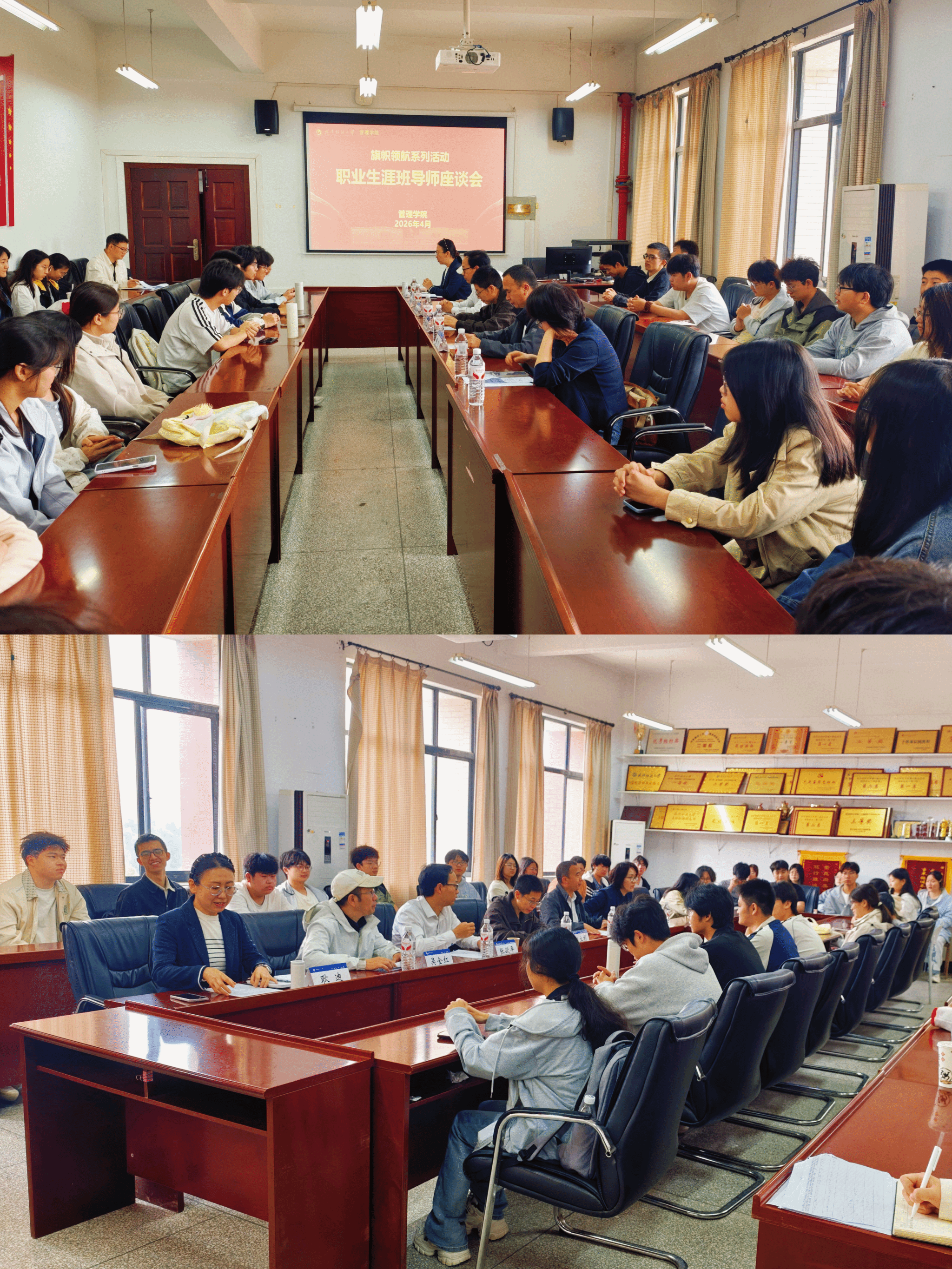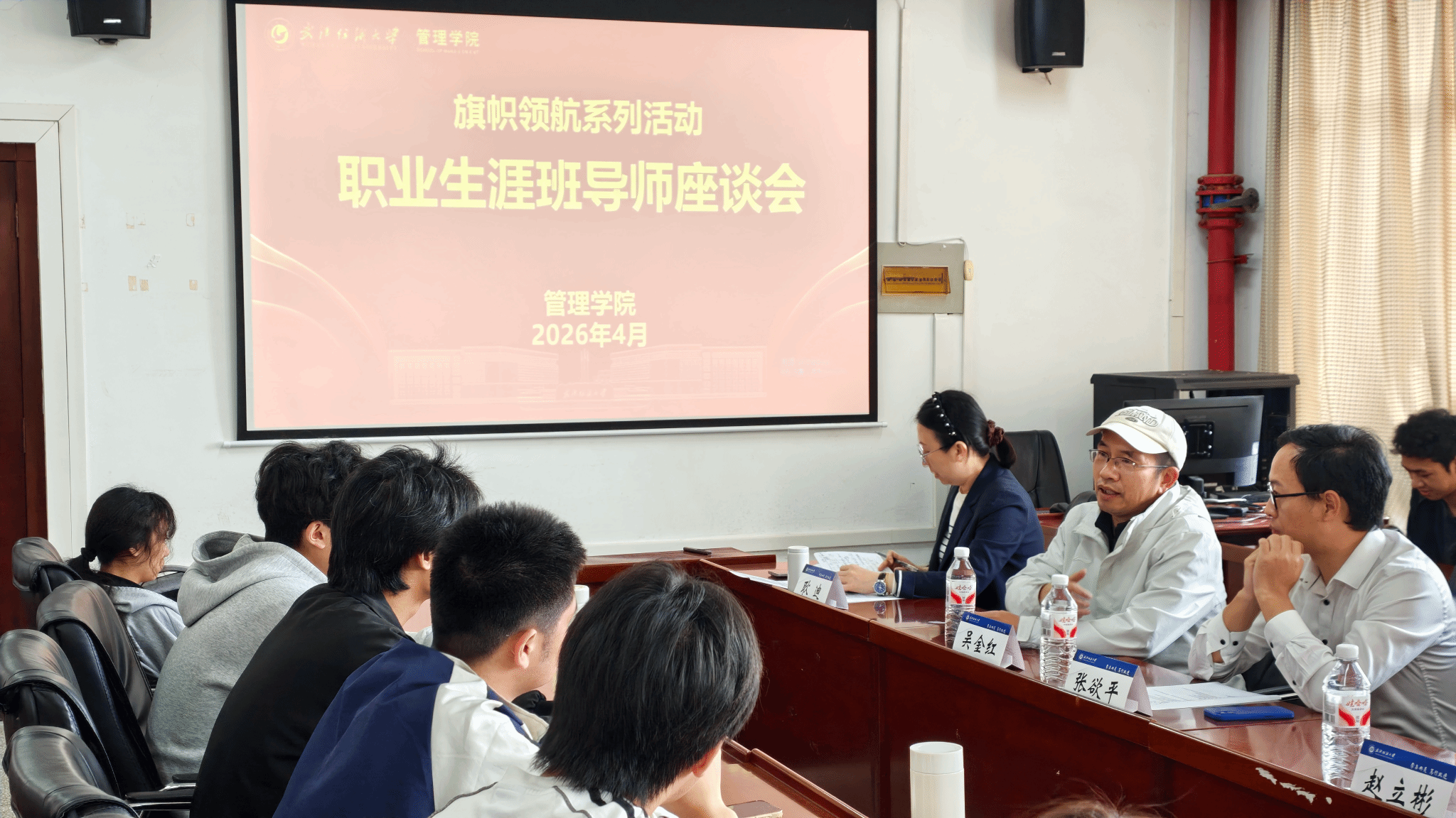 春意渐盛,芳华正好。4月13日上午,管理学院“旗帜领航”系列活动——职业生涯班导师座谈会在阳光校区崇德楼536会议室举行。电子商务专业2006级校友、管理学院大数据管理12501班职业生涯班导师张欲平受邀出席并作主题分享。管理学院党委书记赵立彬,执行院长吴金红,副院长张飞,工商管理系教师涂晓春以及结对班级大数据12501班全体学生参加活动。管理学院党委副书记、副院长耿迪主持活动。