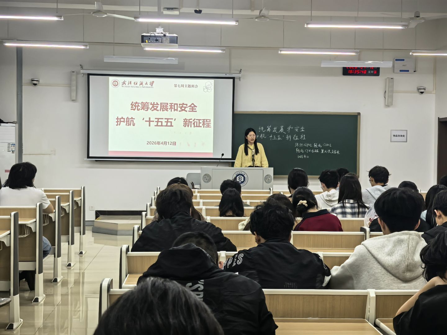 为迎接第十一个全民国家安全教育日,深入贯彻落实总体国家安全观,增强师生国家安全意识,4月12日,纺织学院组织开展“统筹发展和安全,护航‘十五五’新征程”主题班会。班会由辅导员、班主任主持,全体本科生参加。