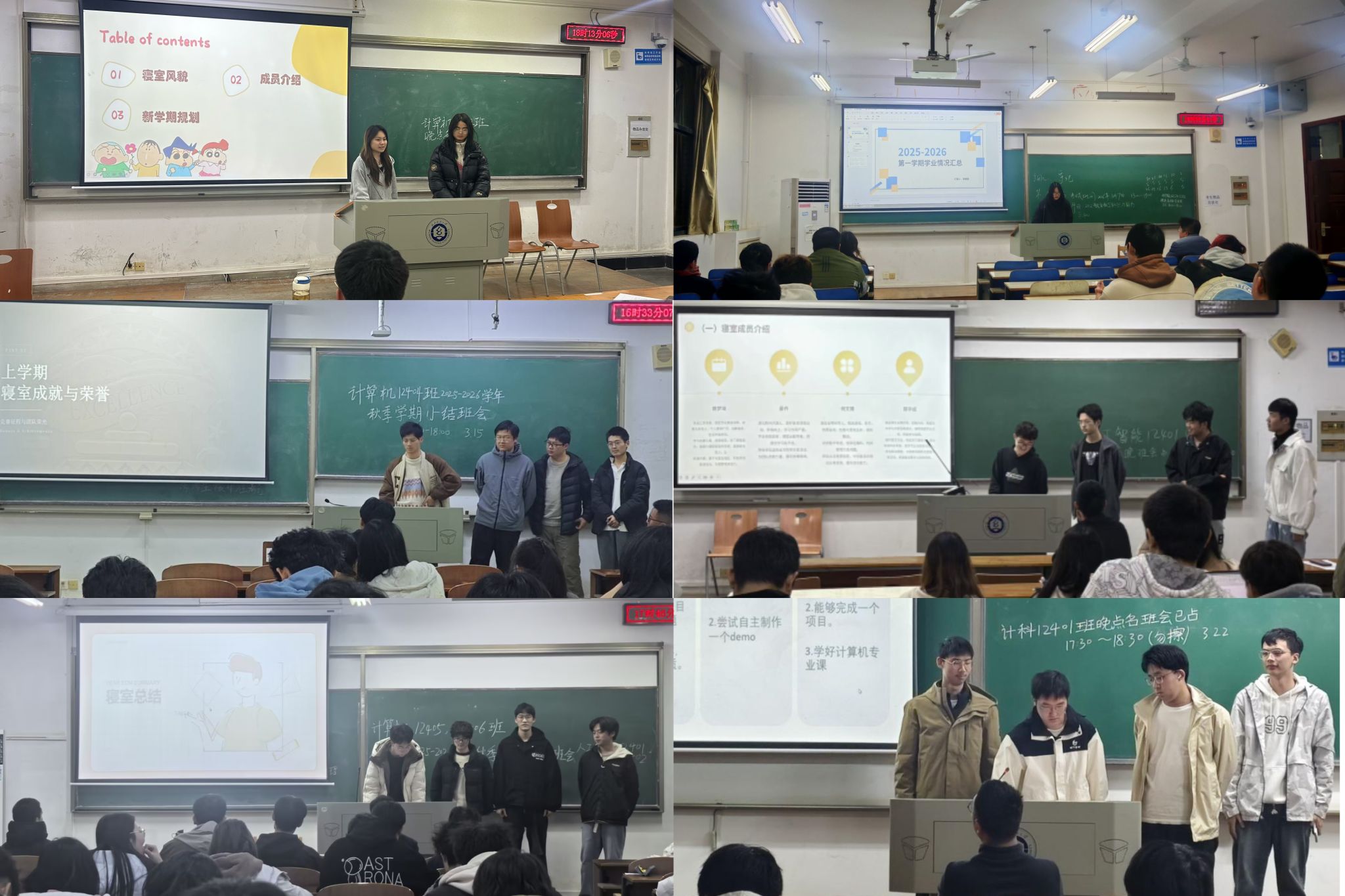 据悉,计算机学院已经连续开展三期学期小结班会,后续也将持续跟踪各寝室目标落实情况,开展“学霸寝室”“文明寝室”等评选活动,推动学风建设与寝室文化建设深度融合,让良好的学习习惯和互助精神从寝室这方小天地里生根发芽、蔚然成风。
