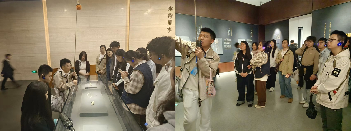 活动中,全体成员跟随博物馆专业讲解员,依次参观各主要展厅,聆听细致深入的解说。讲解员以扎实的专业功底和生动的表达方式,深入阐释文物背后的历史故事与文化内涵,通过灵活多样的呈现,让厚重的历史可观可感、可触可传。同学们认真观摩、积极交流,学习如何把握讲解节奏、提升表达感染力,从而更好地传递文化温度、贴近观众心灵。