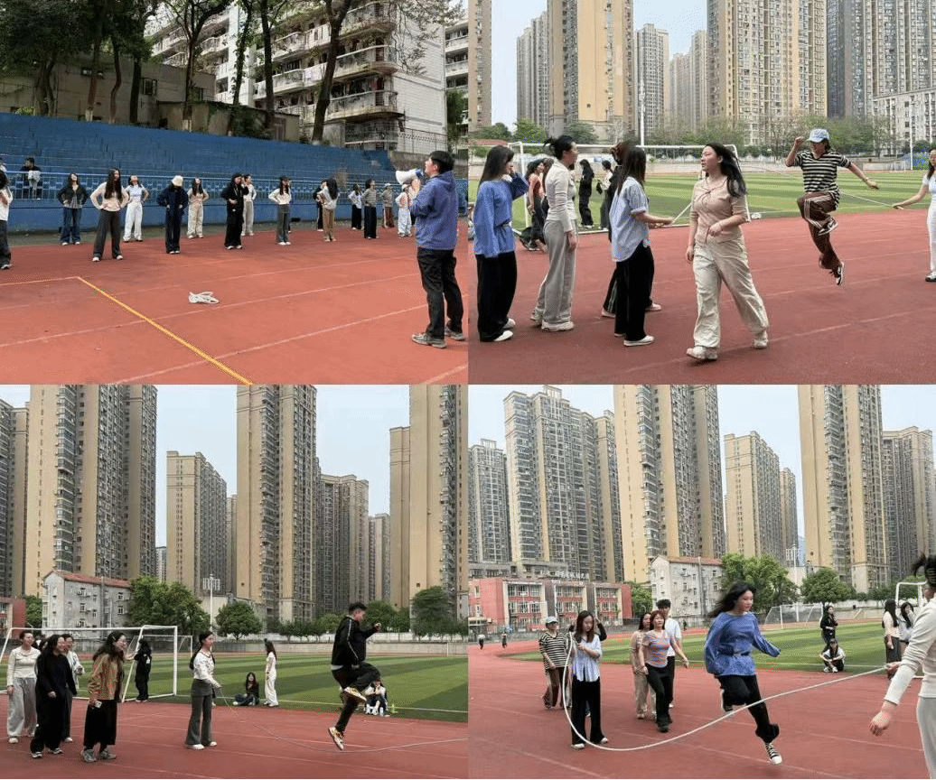 为持续推进校园文体建设,丰富学生课余生活,增强师生凝聚力,创新设计学院于4月17日下午在学校操场成功举办了第二期“跃动青春,绳采飞扬”长绳比赛。本次活动共有四支队伍参赛,包括本科生代表队、两支研究生代表队,以及由专业教师、辅导员组成的教职工队伍。春日暖阳正好,各参赛队伍齐聚赛场,以跳绳竞技展风采,整场比赛活力四射、欢声笑语不断。