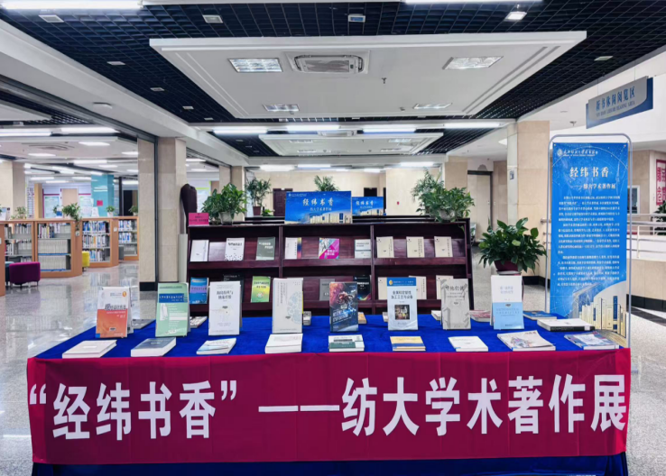 “经纬书香”—纺大学术著作展位于图书馆二楼大厅休闲阅览区,展出时间从即日起至六月底,欢迎全校师生共赴纺大学术之约。