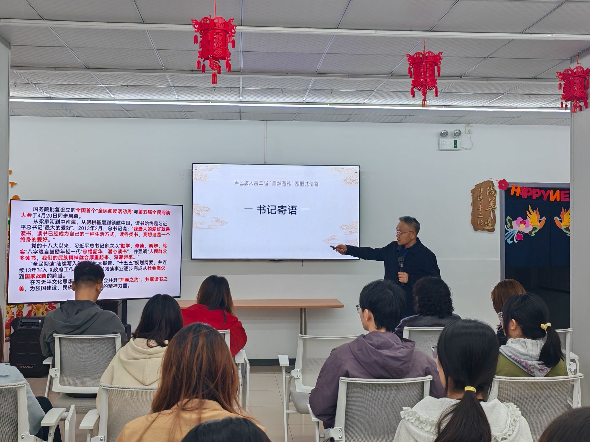 学院党委书记杜新年在寄语中结合《全民阅读促进条例》,围绕静心读书、修身正心、学以致用展开分享。他鼓励同学们在数字化时代摒弃浮躁、放下手机,潜心读原著、学原文、悟原理,平衡专业的“技”与人文的“道”,从《大学》《论语》《道德经》等经典中汲取智慧,做到格物致知、诚意正心、修身笃行。他引用王国维读书三境界与王阳明读书心法,勉励大家沉心静气、久久为功,将阅读内化于心、外化于行,以书香涵养大国青年气质。他强调,“章服传薪・自然有礼”悦经典系列活动是以经典阅读为核心的文化育人活动,立足立德树人根本任务,聚焦学生全面发展与校园文化提质,是学院践行正确政绩观、坚守为党育人、为国育才初心使命,是一场经得起师生检验的重要育人实践,彰显了以文化人、以文育人的责任担当。