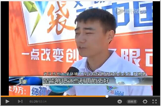 湖北经视的记者对我校绿色环保协会的学生负责人进行了采访,与广大观众畅聊了垃圾分类和垃圾处理等话题,“垃圾只是放错地方的资源,如果能更好的利用这部分资源,我们就能节约更多的能源和资金。”学生的体会在广大市民中引起了强烈共鸣。