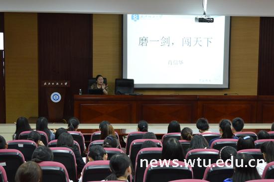 肖信华以高等教育与初等教育的区别切入,提议大家重新思考“为什么要上大学”。她从哲学角度,借“第十名现象”激励同学们只要愿意努力,人的潜能无限。结合鼓舞人心的事例,肖信华对目前的专业设置和就业形势进行了详细分析。她指出,没有坏的专业和差的工作,只有等待发掘和磨练的自身,只要学会变被动为主动、变消极等待为主动出击,找准定位、科学规划,持之以恒付诸行动,便能闯出属于自己的一片天空。